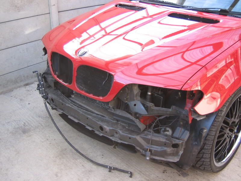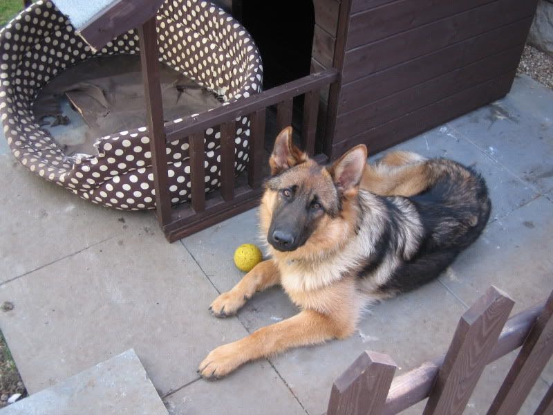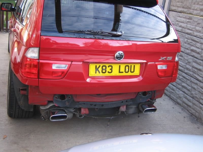 so I removed the front bumper rear bumper arch moudlings side steps grills bonnet vents door strips got to remove the badges and roof bars tonight! I spent ages picking the black rubber things out of the side steps! Lights are going to be done in lamin x so i took the fronts out and replaced the original xenons bulbs with 8000k jobbies..going to do the HID in the fogs when i get time. Problem now is I have puppy training tonight and the x5 is in bits, and Simba isnt going in the 7 could be a long walk tonight lol! anyway here u go    time to polish the exahust pipe tips i think :-)  and a rather pissed of Simba as I stripped his pride and joy! anyway all was forgotton after i gave him a new ball to play with fair swap i think lol 8 months and still growing !  i'll get pics up when its back together hopefully on saturday then its ready for part 2 of paintwork! |