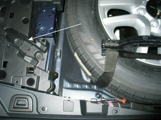 First remove the plastic piece between the spare tire and TCU (three plastic nuts (11mm I believe)