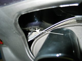 You should now be able to route the antenna cable up through the hole and push the molded plug into the hole.