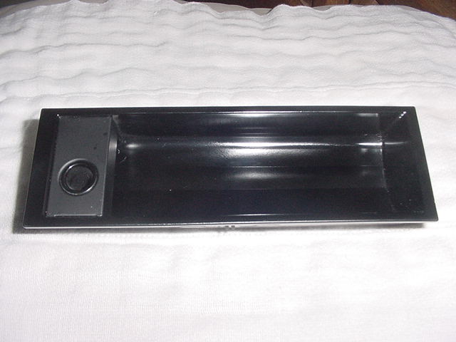 Replacement of OEM ashtray with OEM non-smoker tray including fitment of lens to allow for nightime lighting of tray BMW parts needed Part # 51-16-8-402-968 Description "Storing part" List price $9.00 Tools needed Dremel tool or drill and various bits + a round file if your largest bit is 3/8" like mine was. Original tray full view  Original tray end view w/lens visible  Original tray end view w/lens removed  Non-smoker tray full view  Non-smoker tray end view w/o lens  The installation of the lens was quite simple. 1. Pop lens out of original tray 2. Measure original tray for center point of lense opening and mark. The opening is 7/16" in diameter 3. Either Dremel or drill new opening in non-smoker tray 4. Snap lense into opening of non-smoker tray from the inside Non-smoker tray end view w/lens installed  Non-smoker tray full view w/lens installed  Non-smoker tray completed installation  It's a very inexpensive mod, and only takes a few minutes to install |