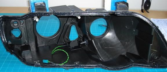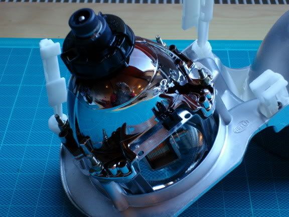 Introduction: For a while now I have been interested in upgrading my pre-facelift BMW X5 (E53) headlights from Xenon to Bi-Xenon, but only with best quality OEM type parts. After much research, quite some trial and error, and some dead-ends, I found there is a very good way to do this and so I felt in worth writing this up for those who may be interested in this modification. Challenges: The first challenge I faced is that my car is one of the very last, pre-facelift cars, (manufactured August 2003). Therefore the headlights fitted were “permanently sealed” ones and cannot be baked open. However, after some close examination, I determined that the non-Xenon headlights use the same “shell” as the Xenon lights. Hence I was able to purchase from eBay some very good quality non-Xenon headlights manufactured in the year 2000 and to avoid using my original headlights, I also found some very cheap Xenon headlights from a wrecked X5 on eBay, these headlights were damaged, but all I wanted from them was the inside silvered plate that holds the lamp units and a few other small parts. Hella makes all of these headlights for BMW. The second challenge was to find a Bi-Xenon projector unit and solenoid electronics, to fit into the original BMW headlight units. At this stage it is worthwhile to explain what I mean by solenoid electronics. To achieve the Bi-Xenon capability, the projectors all have solenoids that move the normal dipped beam shield out of the way of the Xenon bulb, thus achieving a high beam pattern. The solenoid needs a high current to move the lever and then a much lower holding current to keep it in place until main beam is switched off again. Some solenoids have one coil (two wires) and use electronics to reduce the current through the coil after about 1 second; some solenoids have two coils (three wires) and expect full voltage on the first coil for one second and then full voltage on the holding coil (only) thereafter. As it happens the post-facelifted E53 Bi-Xenon headlight uses one coil and incorporates the electronics into the integrated ballast unit, whilst the E46, for instance, uses the dual coil method but also integrates the electronics into the ballast unit. Without the correct electronics the solenoids simply burn out or fail to work. Another consideration is that of right-hand drive, left-hand drive and ECE (EURO) versus DOT (US) projectors. ECE projectors give out more light and have a sharper pattern than DOT projectors due to local regulations. In my case, I needed an ECE projector suitable for the UK (right-hand drive), but with a mechanism to alter the pattern to suit left-hand drive operation, when needed, for frequent driving in Europe. The original Xenon lights fitted to E53s in the UK have a lever on the Xenon projector that move a plate to blank off the raised kerb-side pattern, thus making the dipped beam pattern a straight line cut-off. Right-hand drive pattern: ![]() Left-hand drive pattern: ![]() Right-hand drive pattern (in LHD setting), or adapted unit (see below): ![]() After extensive research, and after buying several trial projector units off eBay, I discovered that there are several options for Bi-Xenon projectors. For example, the post face-lift E53 Bi-Xenon headlight projector fits directly into the pre-facelift housing, but it does not come with integrated solenoid electronics and it is actually of a much poorer manufacturing quality than the pre-facelift unit, (I managed to acquire two brand new units, but found that the projector is much less reflective, quite flimsy and that the design of the movable plate and the right-hand drive to left-hand drive adjustment lever is pretty poor in construction, (the adjustment mechanism hardly works in reality). I therefore started to look for other suitable units and particularly considered cars from Germany that might have Hella Bi-Xenon units fitted in them. With the help of some very useful web sites: http://faqlight.carpassion.info and http://www.intellexual.net/hid.html and after some further eBaying, I found that the Audi A6 projectors from around 2002/2003 are a very good choice for the following reasons: Firstly they are of very good quality, (as good as, if not better than the original Xenon projectors), secondly the solenoid comes with integrated electronics, (so only needs to be cabled to the high beam bulb circuit directly), and thirdly the projectors match up and fit perfectly into the headlight housing mounting bolts. These units also have a very good right-hand drive to left-hand drive switchable mechanism, regardless of whether you buy an original left-hand drive or right-hand drive version and are made by Hella. As you will probably have gathered I ended up buying quite a few different projectors, some of which are now in the rubbish bin. Eventually I bought purchased some ECE version Audi A6 units from HID Planet http://www.hidplanet.com/rs6.html based in the US. These were left-hand drive units and convinced me that these were the correct type of projector for this application. These units are perfect for left-hand drive cars, so if you have left-hand drive this is the way to go. However, as my car is a right-hand drive car, and these were left-hand drive units, the dipped beam kicks up the wrong way (see pictures above). There are two solutions for this issue. You can disassemble the movable shield and carefully file off the kicked up part so that the beam pattern is completely flat and then fit the modified shield back to the projector, (it now has a very effective “universal” pattern – suitable for left-hand or right-hand drive without any switching, see picture above), or, if you wish to have the original right-hand drive pattern then you can try to hunt down an original right hand-drive unit. However, I could not find any right-hand drive units on eBay or anywhere else and resorted to buying two completely new Audi A6 headlights from the local dealer, then stripping out