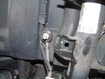 a 13mm socket, loosen the 3 nuts that secure the strut. Do not remove
