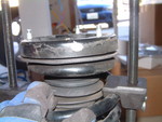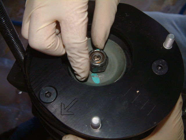 Place the assembled strut hat onto the strut with the springs still compressed.