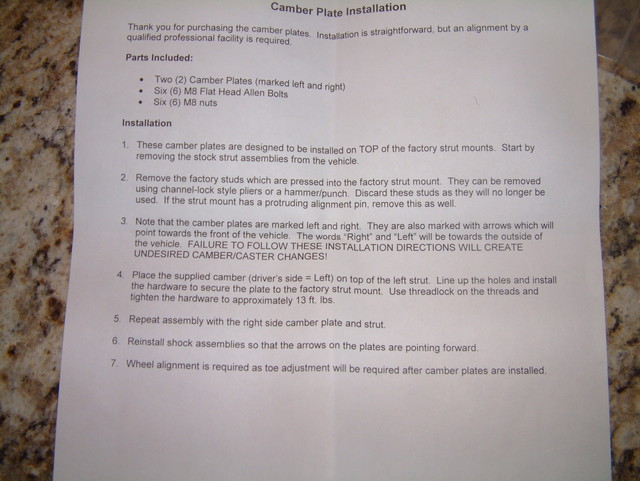 Ensure that the camber plate's engraved arrow points to the front of the car