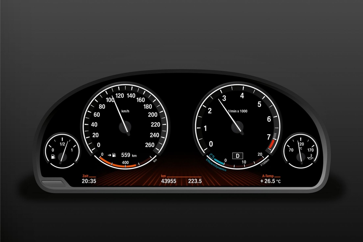 Like so many aspects of the 5 Series Gran Turismo, its instrument cluster combines BMW tradition with advanced, beautiful new executions. Here the entire cluster is in a high-resolution Black Panel display, in which four classic circular instruments are most prominent; other driving-relevant displays and readouts – including Navigation if present, vehicle-monitoring functions, upcoming service requirements and other information – also appear here in their various (and function-related) graphic forms. Climate-control settings and controls are located in a second Black Panel display in the center console stack.