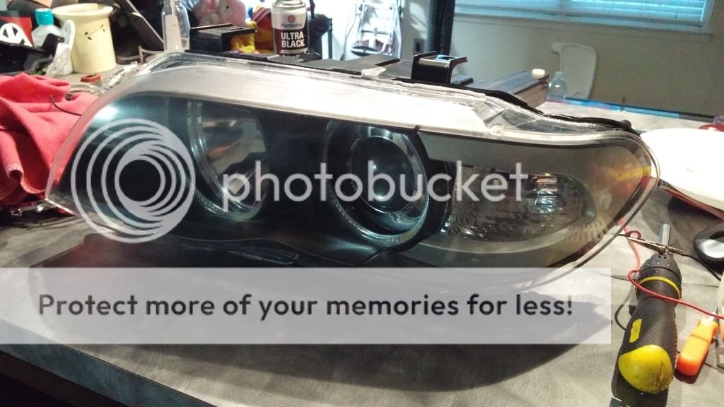 Here's where I'm at currently. Angel eyes mounted, corner lens painted, and now I am going to polish the lens before permanently reinstalling it.