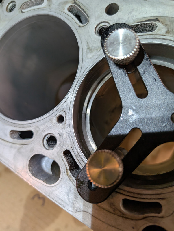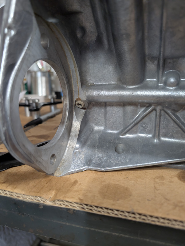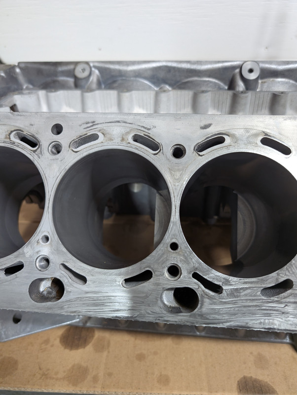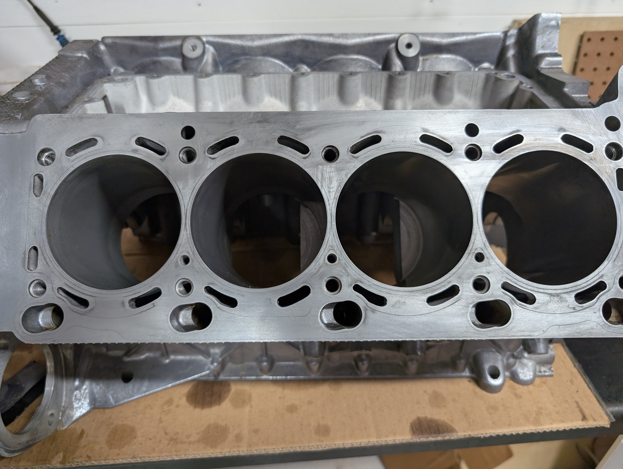 With the pistons assembled, I cleaned the deck of the traces of head gasket where I could feel it when I dragged a fingernail over it. Interestingly bank 1-4 started out with significantly less old material around the water and oil passages than 5-8. I used 1200ish wet/dry sandpaper with wd40 to lubricate the decks. Lots of grime left on the surfaces which I'll clean off with a good spray down with cleaner. 1-4 after working it over: ![]() and 5-8 during the process. I ended up using some Permatex gasket cleaner on this side which helped get the last bits off. ![]() I also cleaned the mating surface for the coolant gallery cover and the rear main seal assembly on the back of the block with Permatex Gasket cleaner and a very gentle scraper to get the 20 year old paper gasket remains off. The block has several of these very small hex head plugs scattered around the bottom. I assumed they are drain plugs (in addition to the two large plugs on either side) so I pulled several that came out easily (several, like below, didn’t budge so I left them in rather than strip the hex head). My plan is to reinstall them with a little blue loctite to ensure a good seal after I do a final cleaning of the block with brake cleaner, once I size all the rings. ![]() ****update*** I traced the fluid path leading to these small plugs and they are plugs in oil passages which lead to the oil squirters under the pistons. The oil flows under the valley in a tube cast into the block to the back where it hits a spring valve. I assume this keeps the oil in the head until it warms up, then the valve opens up and allows oil to flow down into the squirter circuits on each bank after which it simply falls into the pan below.