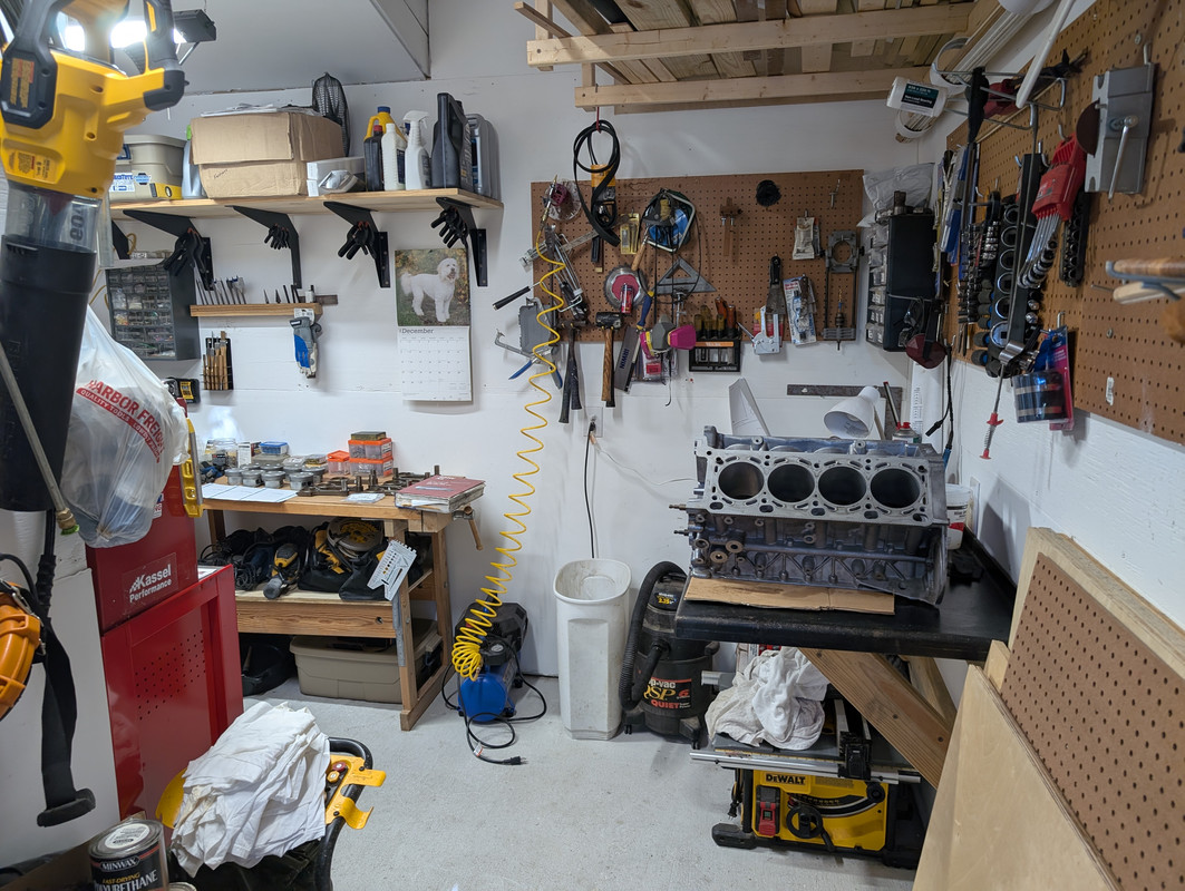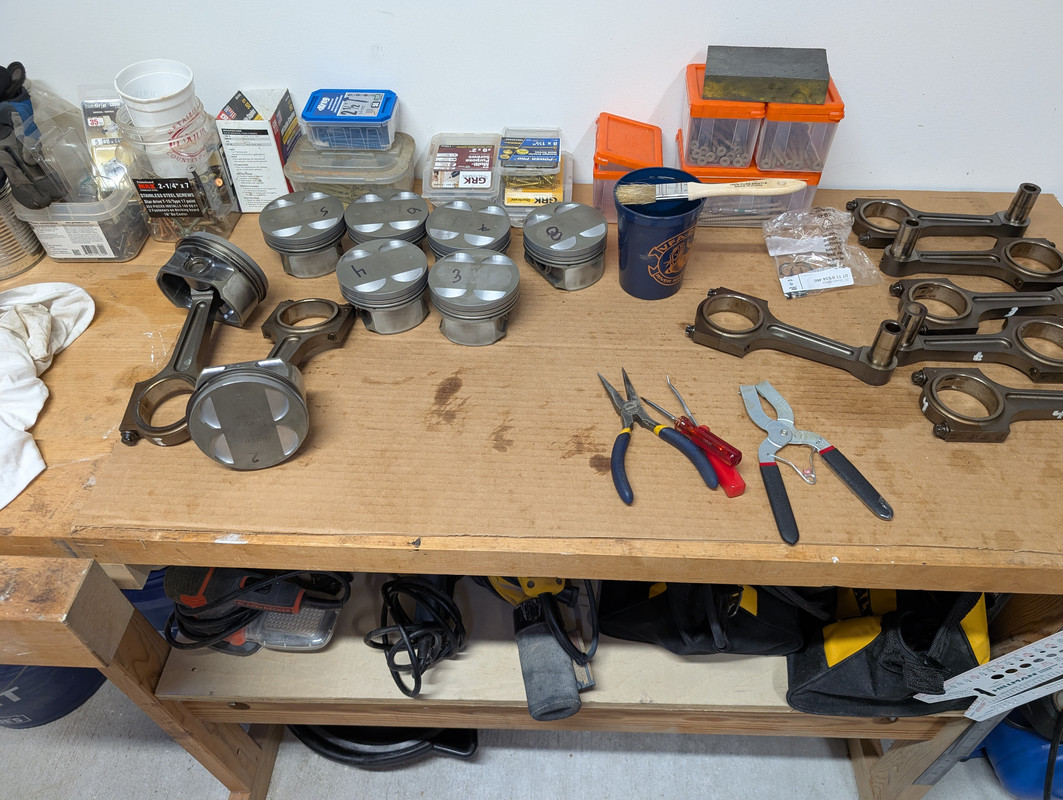 With the pistons cleaned and all the parts on hand, I didn’t have any more excuses to put off beginning the assembly of the motor in earnest. So I cleaned my small shop for most of the day instead. In fairness, it was a pig sty and needed it.