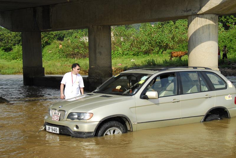 ROGERKIU, i would love for you to be with me in a bar fight; you gots no fear. You gotta leave the off-roading to the 4x4s; its not for all-wheel drives. That landcruiser sitting on the bank looks good there, cuz its built for that (I own one just for this purpose). But that X in the middle of the stream (looking as if it is about to be swept downstream); most are thinking, "that guy is fucking nuts!"