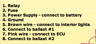 Note: Headlights must be mfr'd prior to 10/2002. After that Hella Corp changed the glue and they are very hard to open. Check the date code on the back of the headlight housing. You read the stamp like this (reading 08/2001): ![]() ![]() ![]() ![]() Removed the amber, sanded the outside reflector edge black, painted the sockets chrome and installed InvisiLite bulbs. ![]() ![]() ![]() ![]() ![]() About adhering the AE rings to the black inner headlight housing: Once the waffles are removed, hold the angel eyes where you want them. There is a small tab on the rings. Mark where the tab meets the black inner frame and make a cut out so its fits nicely. Now, position the rings where you want them, with the tab in place. Tape them somewhat loose with blue painters tape. Adjust the rings as needed eventually taping them securely in place. A few pieces of tape will suffice. When you are happy with the fitment of the rings to the black inner frame, place 3 beads of clear RTV silicone per the pic below. I put my beads behind the rings mostly so that its not very noticeable. At this point don't mess with it anymore, let the RTV cure. This can take some time. Read the tube for dry time. I waited about an hour. Carefully remove the blue tape and your good to go. ![]() ![]() Bosch type relay explained...........Specific wiring instructions ![]() ![]() ![]()