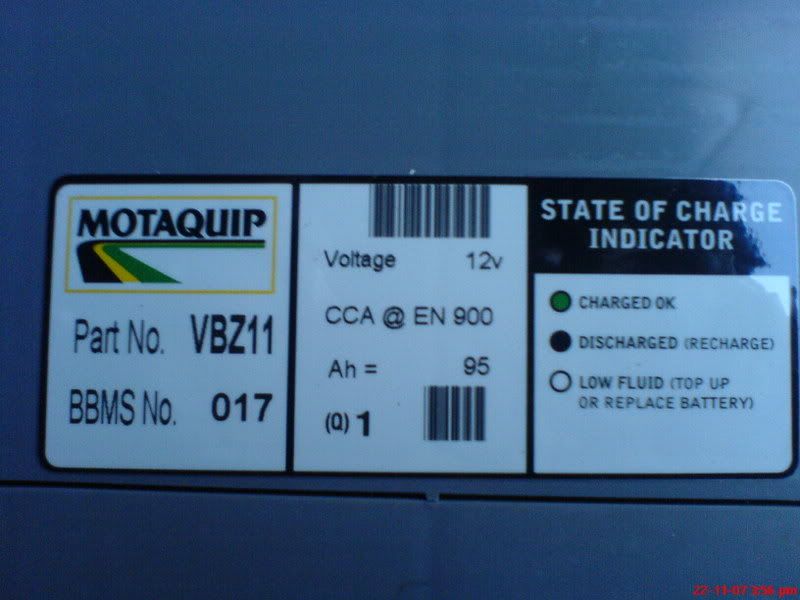 Well finally got my new battery today and installed it. It's a 95AH With 900CCA and quite a stylish looking thing too!, although that doesnt really mater in this case.