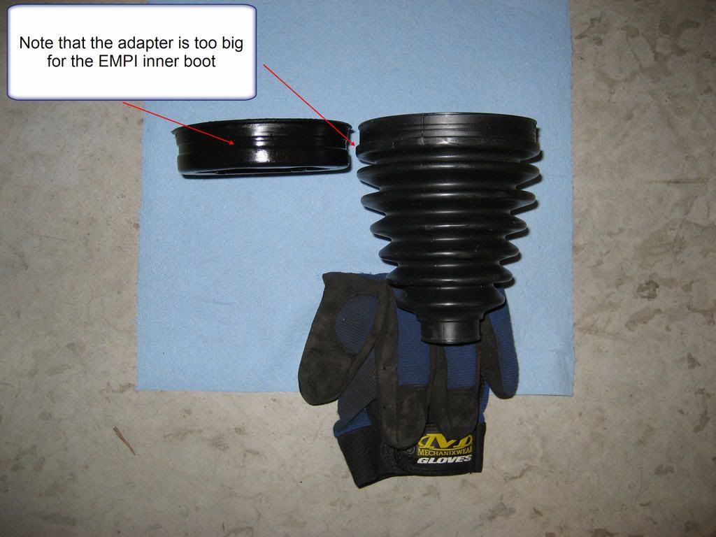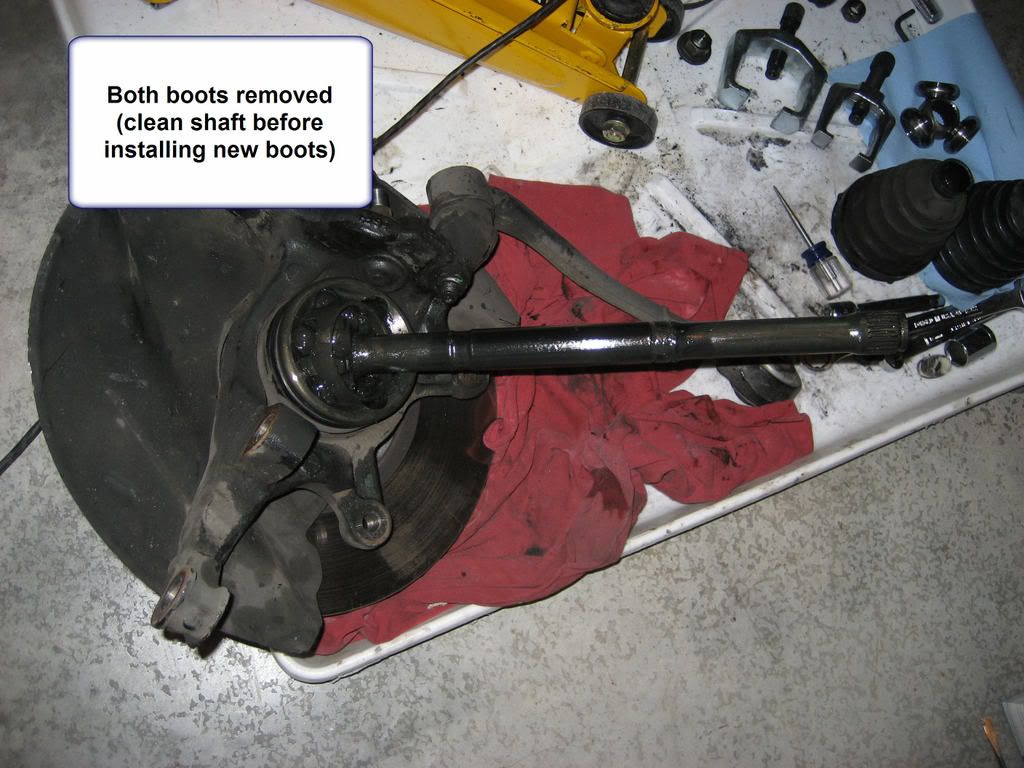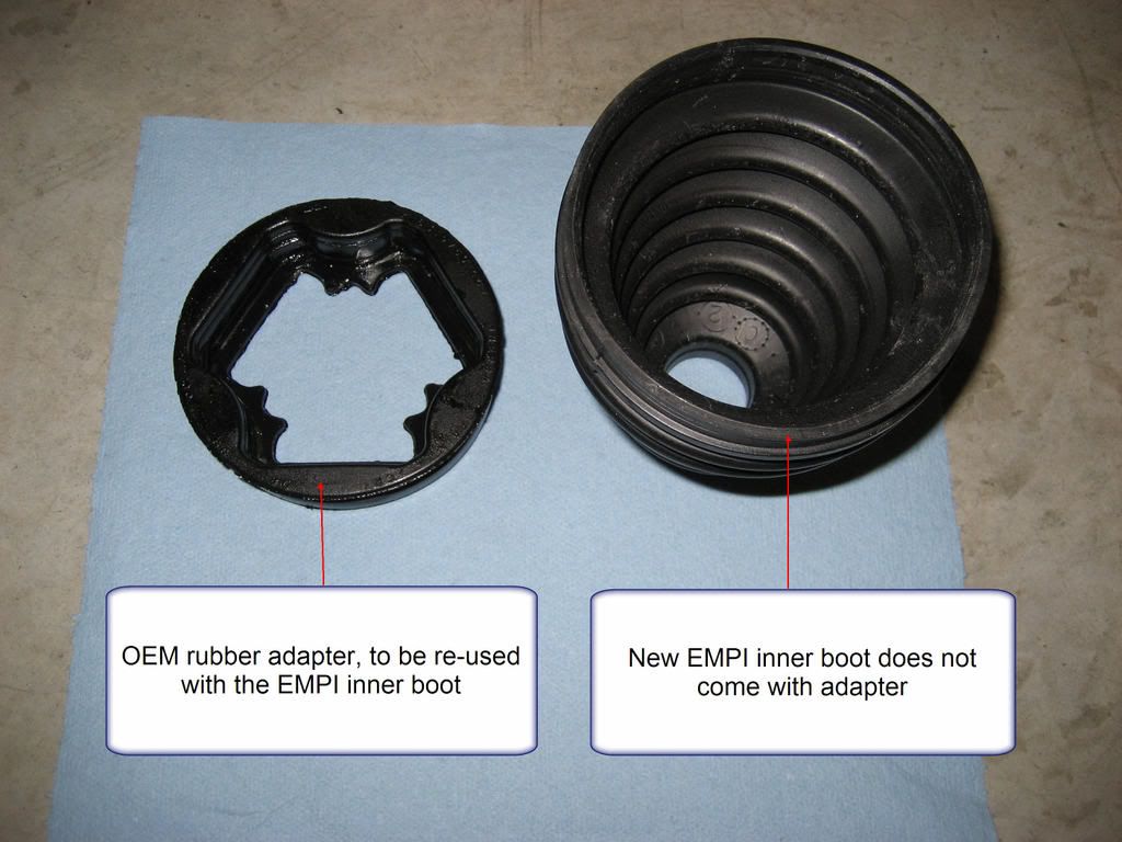 Excellent write up. I just used this to do my passenger side inner and outer CV boots and your descriptions and pictures make it an easy job - much easier than I anticipated. I can't believe anyone would go the other route of pulling the hub off, it must be rough. I used GKN Loebro inner and outer boots from germanautoparts.com. The Loebro inner boot does not come with a new rubber adapter but it fits perfectly with the existing OEM adapter.