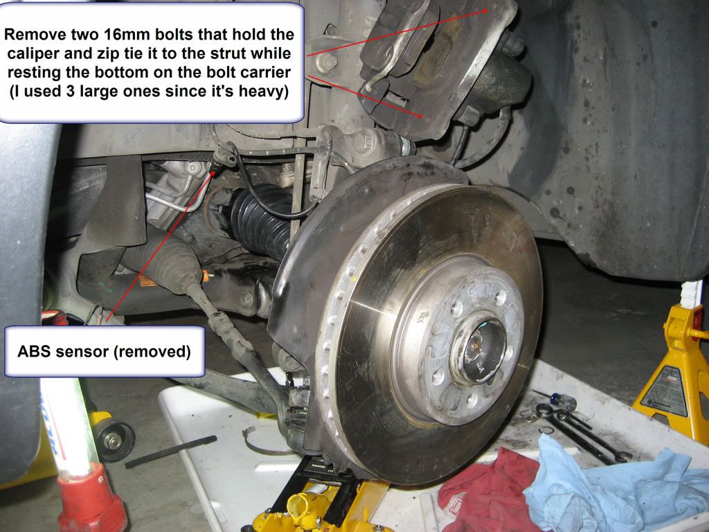 also can i leave wheel speed sensor in place whilst doing this . i need to replace right front outer boot so will i need to disconnect some piece of the ride height sensor .and are you saying that the brake calliper stays put . |