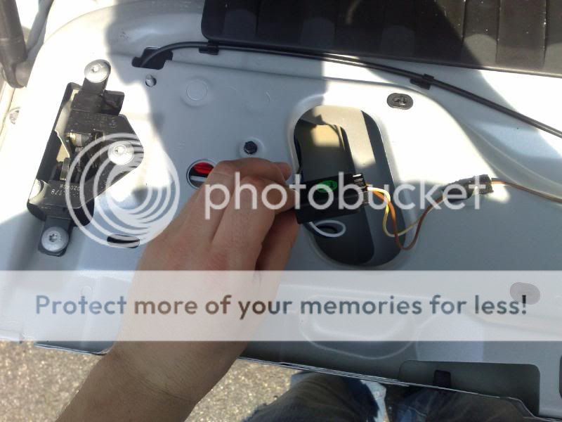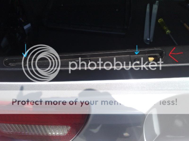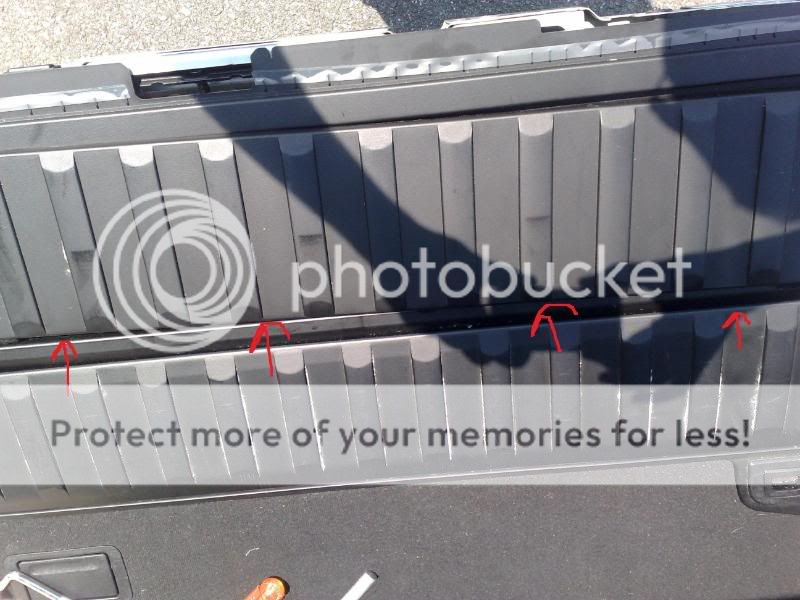 open lower trunk lid and pop out the black plastic covering. you can start at the arrows or the opposite side, i found the arrows easier.
