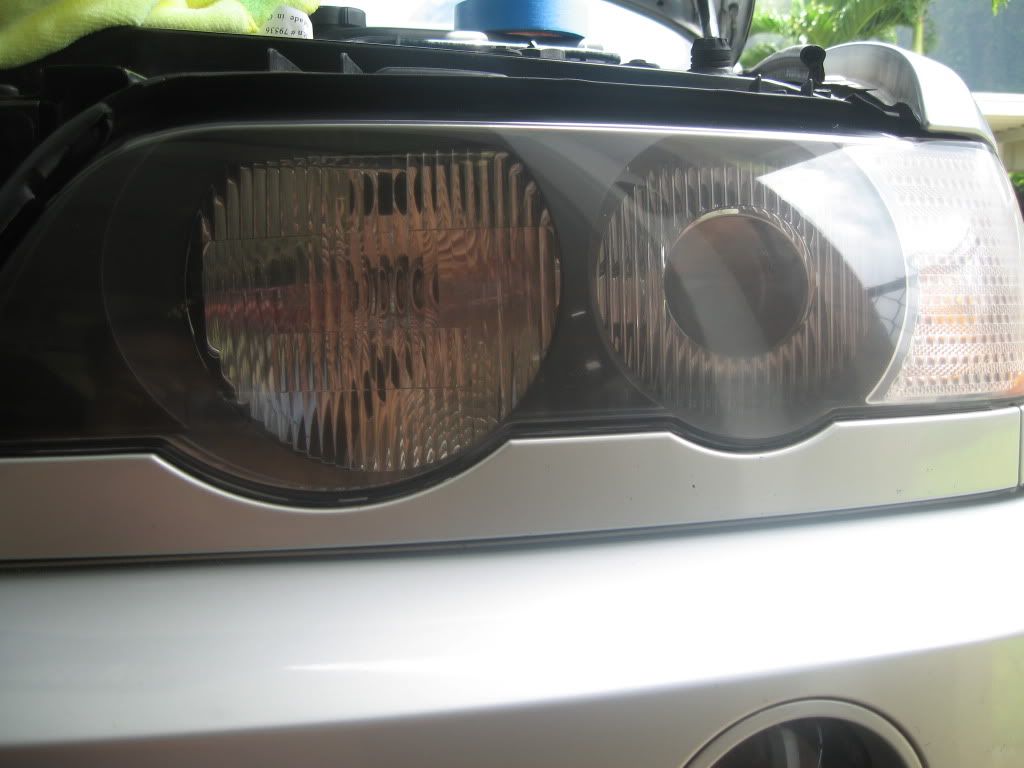 I finally got around to working on my set, and all I can say is the results are phenomenal. Here's an overview to what was done. 1. Open the hood and remove the upper headlight rubber molding. It's just clipped on so pull towards the front to remove. Remove any existing polish/wax with denatured alcohol and a cloth. 2. I used 3M Blue painters tape to mask off the painted areas surrounding the headlights. ![]() As you can see my lenses were in pretty bad shape. The hazing is due to scratches and oxidation. 3. It really depends on the condition of your lenses. I consider mine being on the slightly worse side, so I chose 3 different grits of sandpaper. I started with 800, then on to 1000 then finishing with 2000 grit. I used 3M branded paper. Make sure to use lots and lots of water during the sanding process. Always keep the lenses nice and wet. So, started with 800 grit. I've read that you should alternate sanding direction between each grit of paper. I'm not sure if that is necessary, but I do believe that you should always sand in one direction. Do not sand using a circular motion. ![]() After sanding for 8 minutes or so, and wiping the lens dry. Did the same with 1000 grit, here's the picture. ![]() Finished off with 2000 grit. Sorry didn't take a picture. Now for removing the scratches left behind from the 2000 grit paper. I used 3M Perfect-It II Foam Polishing Pad Glaze along with their Foam Polishing Pad. I used my Makita 9227CX3 polisher, not exceeding 1800RPM. Within 2 minutes all scratches were gone. Finished it off using my PC7424 with a closed-cell foam pad, and Black Magic finishing polish to remove the last of the 3000 grit scratches. And last but not least gave it a good coat of paint / plastic sealant. The results speak for themselves. ![]() All together spent no more than 1-1/2 hours to complete. Very productive morning. Now it's time to tackle the paint. Can't wait for next weekend.