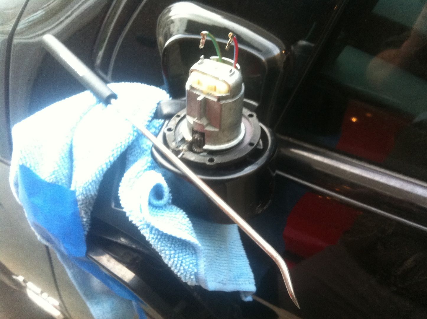 Today, I tore apart the driver's side mirror to see what was the cause of failure. (Attached picture of instructions on taking the painted mirror cover pieces off.)