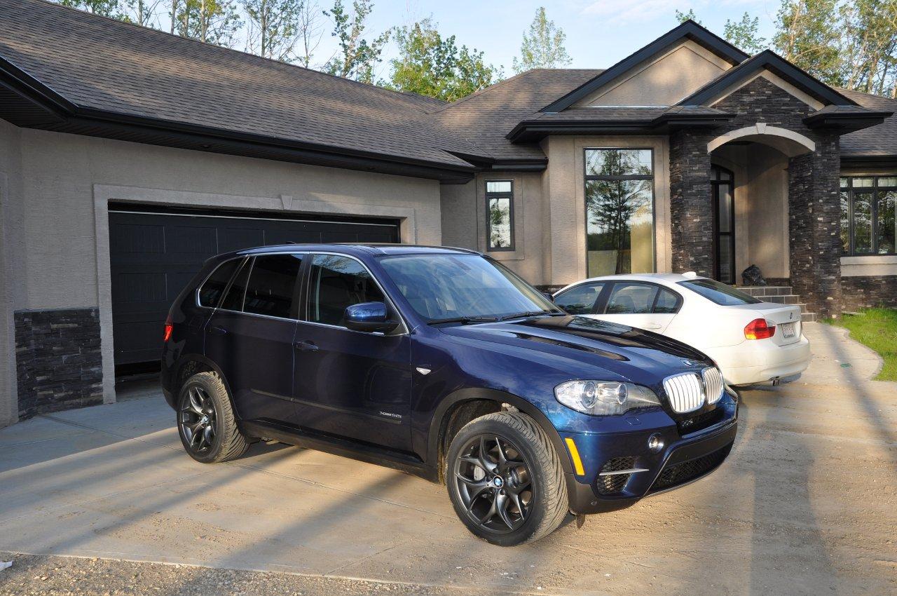 Pics of my 2011 X5 50i in Deep Sea Blue Metallic with 20" 215's (Replicas). This is a Canadian X5.