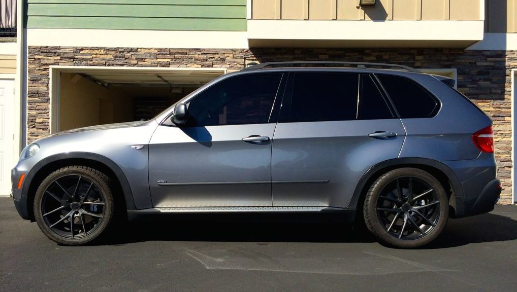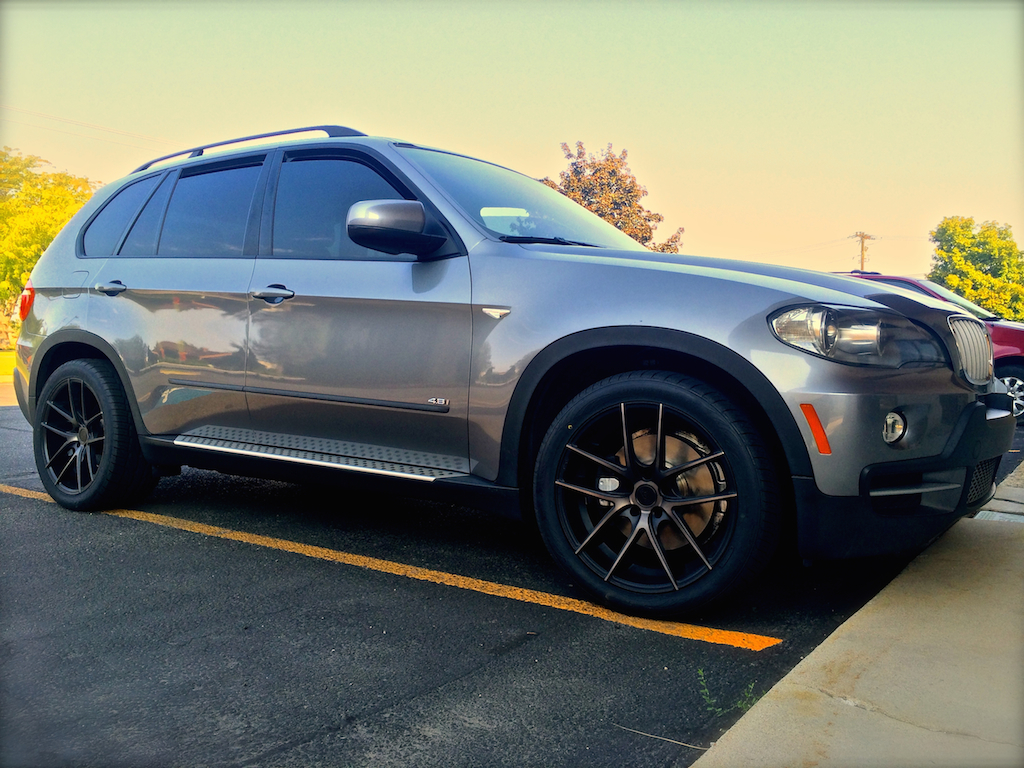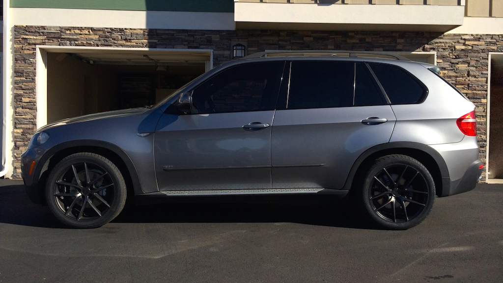 I wanted to give a big   to pnoyako85 for his help and being quick to get back to me with any questions I had. Front 275/40/20 +15 offset Rear 315/35/20 +20 offset Next week I'll be installing the H&R lowering kit and that should help settle her down a bit.  I'm happy, and that's all that matters! UPDATE: H&R 1.2" lowering kit w/air installed. IMO it's too low in the rear so I'm going to mess with the links a bit. I have an alignment scheduled $69 + $50 for a BMW steering assist reset (i believe that's what the guy said). My fender flares were delayed but I should have those soon and I'll post some pics once I get them installed. Removing the front struts was a complete B1TCH! They were not straight forward like many of the other cars I've done this to. I didn't see anything out here that went into much detail for this particular install, so if anyone wants a write up I'll try. If you have money to burn, I say pay for it to be done! Update 2: I didn't like the slammed look or the bouncy ride in the rear so I've re-adjusted the rear links (last two pics) and now it rides and imo looks better. Overall though, I think it looks pretty darn good. Last edited by beemin; 09-22-2014 at 08:06 PM. Reason: pic and info update |