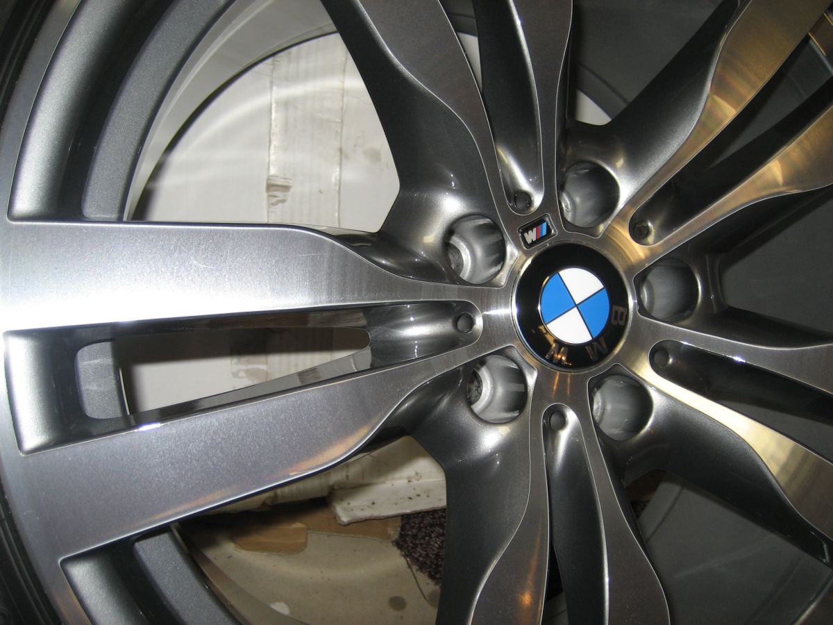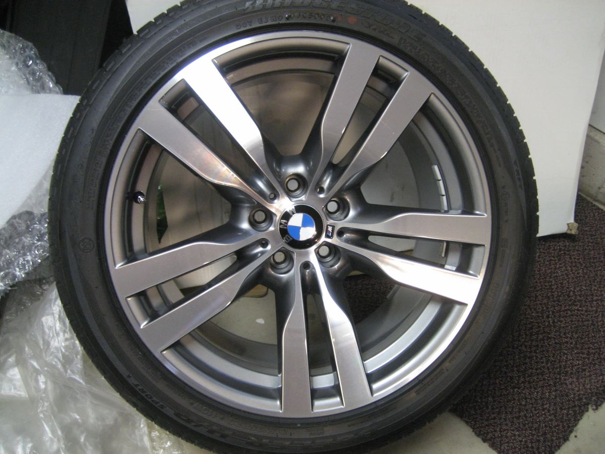 These are in brand new condition(see pics below). There are no marks, chips, curb rashes etc. No clear coat chips either. These wheels are forged and polished face and much different than the stock X5 M wheels. They look brand new and shiny. Tires are same as what come with new X6 M - Bridgestone Dueler Run Flat H/P Sport. This is a complete OEM set with tires and TPMs balanced and ready to mount. Price is $3800+shipping+paypal fees for them. These are located in Chicago area. No shipping and Paypal fees if local pick-up. If you buy new from dealer, it will cost you over $5800 to get them on your car. PM me if interested. Compare to new prices: Front wheels part #s 36116790605 List Price $962 each. RFT Tires(Bridgestone Dueler H/P Sport)------$300 each Tire Pressure Monitors -----------------------$60 each New style Center Caps------------------------$15 each Total---------------------------------------$1337 Each x2 =$2674 Rear wheels part #s 36116790606 List Price $1074 each. RFT Tires(Bridgestone Dueler H/P Sport)------$325 each Tire Pressure Monitors -----------------------$60 each New style Center Caps------------------------$15 each Total---------------------------------------$1474 Each x2 =$2948 Plus wheel balancing and tire mounting------------------------$180 Total for 4 wheels-------------------------------------------$5802 Untouched pics below Wheel 1 ![]() ![]() ![]() ![]() Wheel 2 ![]() ![]() ![]() ![]() Wheel 3 ![]() ![]() ![]() ![]() Wheel 4 ![]() ![]() ![]() ![]()