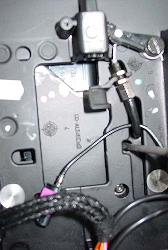 BMW BLUETOOTH INSTALLATION IN A 2003 BMW X5 This small guide is intended to supplement the BMW Bluetooth Installation Guide to help you with the installation of the Bluetooth Retrofit Kit in your X5. The installation was done on an '03 X5 4.6iS (production date 08/03). It took me about 1 hour and 20 minutes because I wanted to take my time and do everything right and not damage (or break) anything inside the vehicle. I am also very picky about noises inside the vehicle so extreme care was taken to ensure that nothing will rattle after the installation is complete. My mobile phone is a Sony Ericsson T616 from AT&T. BMW does not, at the writing of this guide, make a snap-in adapter for this phone, but I expect it would be available soon, since it's one of the recommended Bluetooth phones by BMW. As soon as my T616 is paired with the Bluetooth ULF unit, all of the contacts were downloaded into the vehicle. Everything works even before the system is coded into the vehicle. However, the sound quality is a little bit noisy and static and the system should be coded in order to improve the sound quality (per the BMW Installation Guide). Tools you will need: · Torx-10 screwdriver (from Home Depot, Sears, or your favorite hardware store) · 10mm socket · 10mm key wrench · 3" wrench extension · A couple of flat-head screwdrivers · Wire cutter · Patience! The Bluetooth Retrofit Kit contains these items as pictured. ![]() Below is a picture of the trunk, driver's side, before installation. ![]() Picture of the Bluetooth Antenna: ![]() This is where the Bluetooth Antenna goes (attached to the top bracket, above the GPS DVD-drive). Use the 10mm key wrench to mount the Bluetooth antenna using 2 white plastic nuts. After mounting the antenna, plug one end of the Bluetooth Antenna cable into the connector on the antenna. Run the cable down along the bracket and use the supplied wire tie to tie it down, nice and neat. ![]() Picture of the trunk area where the Bluetooth ULF unit will be installed. Note the black plastic piece under the trunk cargo cover has been removed (where the blue paint is shown). You need to remove this black plastic piece in order to get access to the wires tied down underneath it. Remove it by unscrew the 3 bolts using a 10mm hex socket wrench. ![]() Picture of the black plastic phone harness and the antenna connector bundled together with a wire tie underneath the black plastic piece (removed in previous step). Don't cut the wire tie because you will need it later to re-tie the wires, but untie it from the hook hidden on the left side of the tie and separate them. ![]() Connect the other end of the Bluetooth antenna wire to the Bluetooth ULF unit. ![]() Plug the phone harness into the other end of the Bluetooth ULF unit. ![]() Before bolting the Bluetooth ULF unit into the bracket, remove the Bluetooth Passcode sticker from the ULF and paste it on the while Bluetooth card. The Passcode should be a 4-digit number. Picture of the Bluetooth ULF unit attached to the bracket, ready to go. The area where the white plastic nut goes (by the antenna connector) is very tight. I used a 10mm hex socket with a 3" extension to bolt it in. ![]() Picture of the trunk after everything has been put back together. You can see the Bluetooth ULF unit protruding from the rear (with the purple Bluetooth antenna connector shown). The Bluetooth antenna is shown attached to the top bracket with 2 white plastic nuts and the Bluetooth antenna wire runs down from the top bracket to the Bluetooth ULF unit. ![]() The BMW Bluetooth Installation says to remove the front reading/map light and the mike fret (blank) to install the hands-free mike. I found it a lot easier to remove the whole light overhead console, remove the mike blank, insert the hands-free mike, and re-install the console. To remove the overhead console, first remove the reading/map light by inserting the tip of a small flat-head screwdriver into the middle area of the unit (by the middle push button) and slightly pry it open. Once it's opened, swing it down to remove the light from the console. Disconnect the wire that plugs into the light. The next step is to unscrew the four (4) Torx-10 screws from the overhead console to remove it. Two (2) of these Torx-10 screws are behind the sunglass holder, and the other two (2) are located behind the reading/map light unit you just removed in the previous step. Once the Torx screws are removed, the console just drops down. Be careful, you want to hang on to it and not let it scratch the rear-view mirror surface. The picture below shows how to remove the reading/map light unit using the flat-head screwdriver. ![]() Picture of the overhead console showing the mike blank (from inside). It's the slotted one and is the first slot from the right side of the console. One vehicle that does not have the Mayday System, it's the only blank in the overhead console. You should see the hands-free harness hanging loose from here. If not, it is usually tied together with the Mayday wire (if available). ![]() Picture of the hands-free mike and the mike blank. They snap together and make sure the green-color is facing up (the felt-cover face is facing down towards the slots on the mike blank). The BMW instruction says to connect the hands-free mike and the wire before snapping the mike blank into the console. It should be the other way around. I fed the blank into the opening in the console, connected the wire, and then snapped the blank into the console. ![]() Picture of the bottom after the cover has been removed. Notice the snap-in Bluetooth antenna wire and the black phone harness are tied together. Cut the wire tie. ![]() I've heard a lot of complaints about removing the oddment tray from the center console. The BMW Bluetooth Installation does not show you how to remove it properly but I found the instructions in the TIS CD that helps with the removal of this. Insert two (2) screwdrivers in the 2 holes (as circle