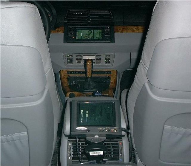X5Monkey's Trip to MI I finally had a second to get some pics together from my recent install at Mobile Innovations. I was going to include the story of my adventures up there but this whole thing got way too long. So, it'll be in the lounge if you care. Here's what we had done... - I already had a Pioneer XM radio installed via cd changer direct connection with Soundgate XM adapter. Antenna specialists xm antenna was already mounted on the roof and antenna wires were hidden. - Nav-TV install. TV antenna hidden in the rear spoiler, completely out of sight. - Alpine DVD changer-mounted in driver’s side rear cargo area - Neo Jukebox 60 GIG mp3 player with voice module to speak mp3 info-mounted in pass. Side rear cargo area. Controller mounted in ashtray hole (actual ashtray removed). They built a faceplate in the ashtray so it looks damn near factory installed. Nothing in the ashtray area was broken for the install, therefore I just have to remove and drop in an ashtray and nobody would ever know the difference. The ashtray closes perfectly to hide it all. - Soundgate BMW docking station- which has 2 sets of aux RCA inputs. It daisy chains the CD changer connection to the back of it so that you can still use it. It also include a switch that toggles between the 3 modes now installed on the CD changer connection. Finally it has an LED which indicates which mode you are in… no light is cd changer, solid light is dvd changer audio, and blinking light is mp3 player. Both the switcher and LED were run the ashtray and mounted next to the mp3 controller. As I wrote, the Soundgate docking station has a connection for the cd changer in the back end, so the Soundgate XM adapter and Pioneer XM tuner were daisy chained to the back. Power for the XM unit is still obtained through the cd changer connection. No hardwire needed - Reverse, mirror image, video camera, installed into the rear Roundel, which as the name suggests, activates when going into reverse and provides a mirror image(meaning flipped image-as it would be looking in the rear view mirror) - Audio/Video cables run from the DVD changer to the rear cup holder area, hidden in the storage area. Completely out of sight. This is because I have a TV with aux input that mounts and powers up from the rear cigarette lighter. Plug In TV and Mp3 Jukebox for this and the mp3 player. Not so fancy schmancy for the people in the rear but very simple and cheap and it works perfectly. - Last but not least, I told Nick at MI, that since the Alpine DVD changer has the ability to play cd’s as well, that I wanted to split the dvd player signal to the Soundgate aux inputs, so that I may also use it as a cd changer. Well, they figured out that that would work but I would not be able to read the track or cd number any place, because the NAV-tv unit plays sound in the mono mode. If I wanted to read it on the NAV screen and listen in stereo, they’d have to create some device to tap the dvd changer directly into the NAV monitor, bypassing the NAV-tv unit.. They devised a swich, mounted in the ashtray also, that looks like a light switch. Whichever mode I was in, NAV, Nav-tv, whatever, if I flipped the switch, the nav monitor would switch to whatever was in the dvd/cd changer and play in stereo through the factory system. I have know idea how they did it, but those guys are frigging geniuses. All I know is, that it works. Everything is super stealth. You wouldn’t know any of it is there if you weren’t looking for it. If I ever decide to sell the x I can revert back to stock for probably 100 bucks of parts. Thanks to Nick, Marty and the great installers at MI for all your professionalism and courtesy. Not one single nick or scratch during the install. Thanks to Tommy for getting me in there. Thanks to Ed for the ride back to the city and the offer of more rides if I needed them. Here are the pics: Driver's side cargo area. Alpine DVD changer, NAV unit, NAV voice control module. The Soundgate stuff is buried deep in there. ![]() Passenger side rear cargo area. The painted a piece of plywood black and mounted the unit on there. Notice how they installed it a little on the low side so that I can still use the top portion of the cargo area for storage. Nice touch that you wouldn't get at most places. The hard drive unlocks, slides out and then docks on my home computer. It's 60 gigs for God's sake! I have like 700 songs on there now and I'll only using around 4 gigs. The voice module is nice because I can use the remote without taking me eyes off the road. ![]() NAV-TV on the Menu screen. ![]() My reverse image back up cam mounted in the rear Roundel. Barely had to cut out any of the Roundel at all for the install. ![]() The image ![]() The Soundgate BMW docking station. Sorry no pic of the XM adapter. ![]() My ashtray now. Looks like it was done at the factory, doesn't it? The controller is for the mp3 player. The push button switch switches between the 2 RCA connections and CD connection. The green LED indicates which mode you're in. And the light switch looking thing on the left is the switch to automatically switch into DVD stereo mode. ![]() Rear cupholder area RCA connections for DVD. Completely hidden in the storage area. ![]() Finally, some not so great pics of the two monitors together. My digital camera isn't great. ![]() ![]() And the Saga Continues...... Just finished the other day. I've been doing some reception experiments before I made any recommendations to the board. The retrofit was kind of a biznatch because 1st time I received the radio tuner from bimmernav.com it was the wrong one. Apparently, there are now region specific tuners that cannot switch between Euro/USA/Japan modes. And with my luck, I got the Euro only one. Martin didn't get another USA one in for another week, so, in the mean time, I had my X torn apart but I had to just twiddle my thumbs until the new tuner arrived. Next problem was the location of the Sirius tuner. As I have