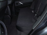 | The rear seat bottom is held in place by 2 clips. Just grab the front and lift straight up.