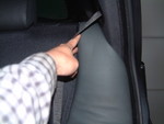 The side seat bolsters are also clipped in. Just pull it out from the top. There is a slot at the bottom where the mounting bracket fits in, so just pull from the top and it will come out.