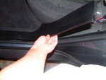 extract them. If you use a screw driver, be careful not to damage it. You will need to remove both trim pieces from both sides. We are going to peel the whole carpet kit back.