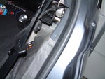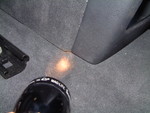 Run the rest of the harness under the carpet and up, out through that X you just cut.