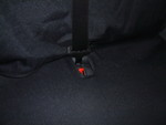 Run the harness down the side beneath the side bolster cushion and tuck it in with the other harnesses already there.