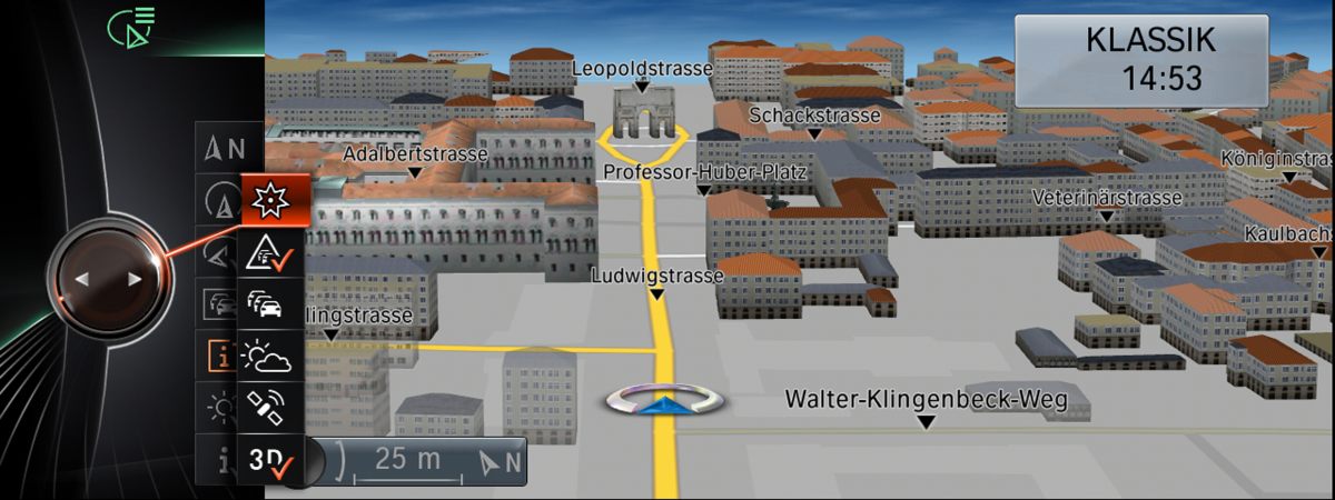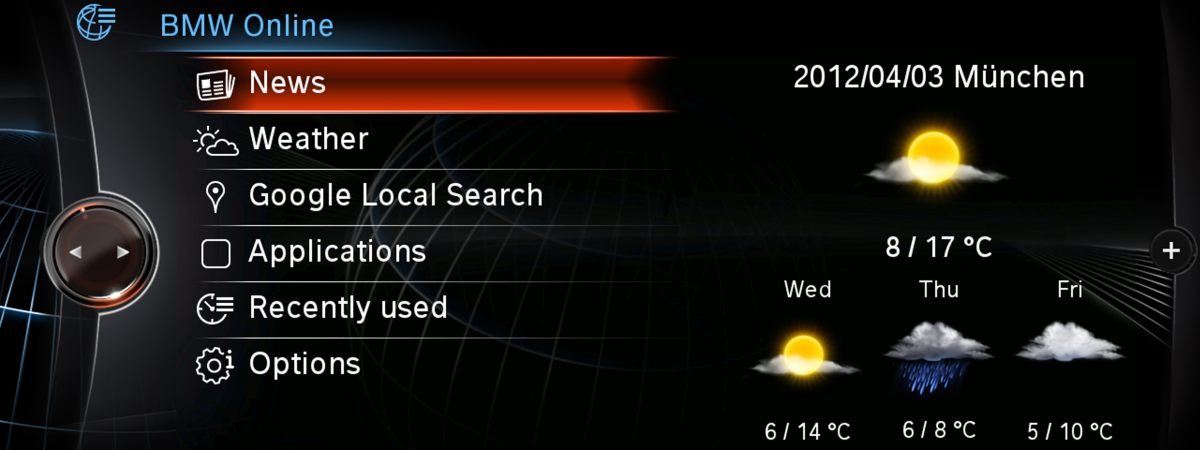 -The new generation of the BMW Navigation system Professional boasts more powerful and impressive performance than ever, featuring a design rendered entirely in 3D, a modified display and control concept as well as a host of extra Navigation, Office and Multimedia functions. -Dictation function with full speech recognition system: for the first time, the driver is able to compose short texts for emails and SMS messages while driving by simply dictating them. Meanwhile, the function for recording voice memos then sending them by email ensures that any flashes of inspiration at the wheel can be instantly preserved. -BMW iDrive Touch Controller: following the addition of a multi-touch touchpad, not only does the Controller allow characters to be entered with the finger, it lets drivers navigate in maps and websites or magnify them. -Product debut: the BMW LTE Car Hotspot ushers in the next generation of mobile internet. This particular accessory makes the BMW Group the first car manufacturer to bring the ultimate in high-speed mobile internet to the road – and, what’s more, for every BMW. -Integration of smartphone applications from third parties: the BMW Group’s Software Development Kit (SDK) facilitates the integration of third-party apps into the vehicle’s native control and display logic, allowing drivers to use their favourite apps in their car, too. New generation Navigation -Overall, the new display concept makes the contents even clearer to read and the functions even easier to use. -Smooth scrolling and browsing, the high-performance system with a 1.3 GHz processor and dedicated 3D graphics chip features top-quality animations and dynamic transitions -New spatial dimension has been added to the way in which the menu levels are displayed: when sub-menus are selected, they appear dynamically from the right, while the corresponding top menus fade into the background on the left, where they are still visible. -New menu display, the route guidance graphics and the map views within the navigation function have also been modified and improved by the addition of various interactive options. The split-screen portion of the central information display, for example, now includes new display functions for the navigation mode. The driver can use a zoom function to change the section of map shown and check that the selected destination is the intended one. 3D City Models -the familiar guiding function using arrows in the split screen has now been supplemented by a High Guiding variant, which clearly flashes up detailed navigation information in the multifunctional instrument cluster display, the central information display as well as the Head-Up Display. -The driver furthermore receives precise directions for changing lane at the right time. -As the driver draws closer to the event, the display gradually shifts from the bird’s-eye map view to an overhead view of the traffic situation for optimum orientation and guidance. A dynamic display of the vehicle’s present position calculated in real time serves as an aid that allows drivers to closely track their progress throughout the turn-off phase -new navigation view option “3D City Models” features a realistic depiction of surrounding streets and buildings to help drivers get their bearings, provided such a visualisation of the city in question is stored in the vehicle’s database. The extended toolbar – putting extra functions at the driver’s fingertips. In navigation mode, there is now an extended toolbar that, for the first time, allows the map contents to be customised quickly and easily without having to exit from the map view. The desired change takes effect immediately, and the driver is able to effortlessly switch the view to suit the current situation and the information required. The moment the driver selects the icon for the extended toolbar with the iDrive Controller, a second toolbar appears as an extension of the original icon bar. This can then be used to open additional selection options in the same view, which were previously only accessible via Option menus. The settings here allow the user to call up Real-Time Traffic Information (RTTI) or weather information, for instance, to display POIs, or quickly switch from the overhead map view to the bird’s-eye view. Depending on the data required, drivers are therefore able to activate individual features, quickly find the necessary information, and then return to their preferred map view. Interactive map and PIE menu. The new BMW Navigation system Professional also adds several new functions to the interactive map view. The iDrive Controller can now be simply turned to alter the map scale or tilted to move the section of map in the display, even in a diagonal direction. Another new feature of the interactive map view is the ability to call up special functions directly from the map itself. All the driver has to do is select a point on the interactive map and the PIE menu will open up in front of the map, providing quick and easy access to a wide range of actions. Depending on the information stored, the driver just has to click to show points of interest in the vicinity, view details for them (where available), start navigation to them, change the map view or display the current location or destination. And should any additional data be available for the selected location, such as a telephone number, website details or an email address, the driver can retrieve this information with a click too, then visit the homepage, for example, or write an email. The real beauty here lies in the system’s straightforward, intuitive and quick operation. RTTI – Real Time Traffic Information. The latest generation of the BMW Navigation system Professional once again employs RTTI technology for calculating routes and diversions accurately and reliably by factoring in the real-time traffic situation for both route guidance and calculation of the arrival time. By using the 3G mob