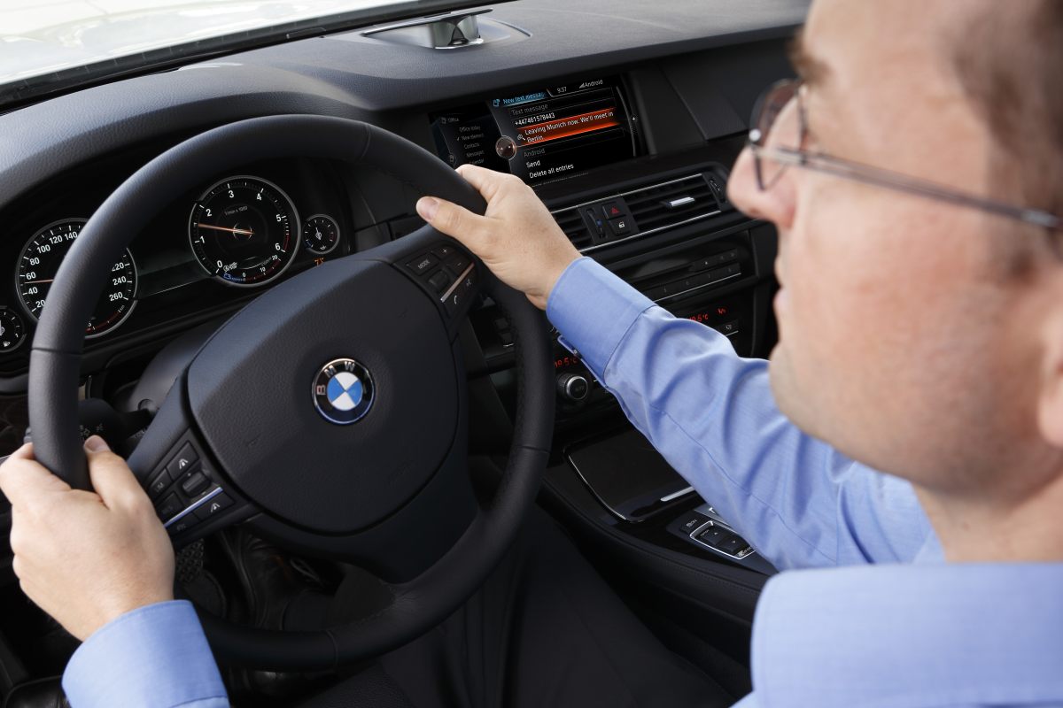 Free text voice recognition in the car. The dictation function extends the range of ConnectedDrive mobile office functions: for the first time, it enables the driver to dictate text freely inside the vehicle and "write" short messages simply by speaking. Available in all BMW models with the new generation of the Professional navigation system and active BMW ConnectedDrive contract.