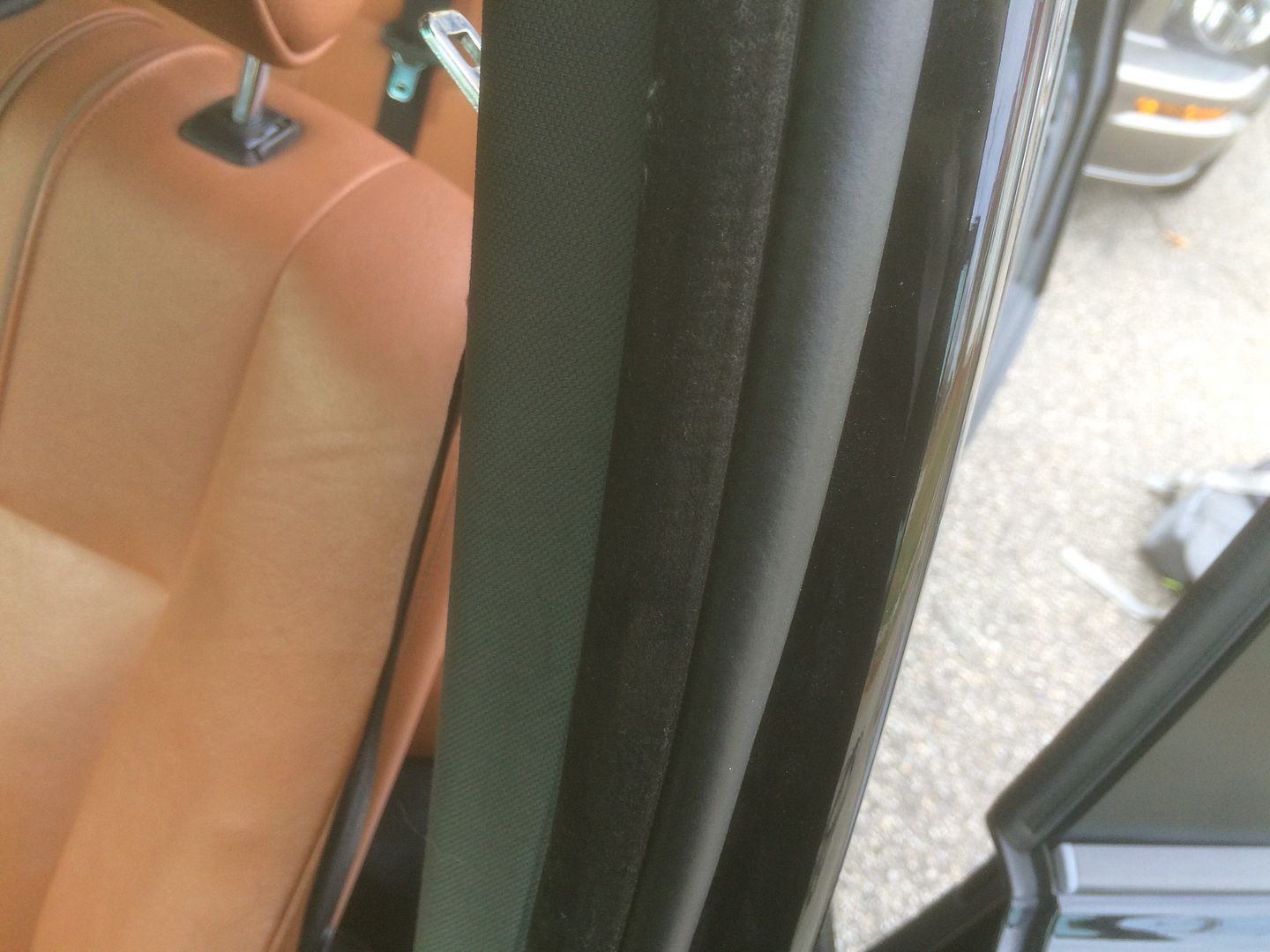 A comparison of the seals as you can see the e46 one is much larger and made with thicker rubber so it will not collapse or wear through as easy  They have a nice velour finish on the inside apposed to the all rubber  Unfortunately the fronts were a bit short I grabbed an extra seal an used that and a rubber insert to connect them all together  It's almost un noticeable unless you are looking for it  And finally a nice tight fit =]