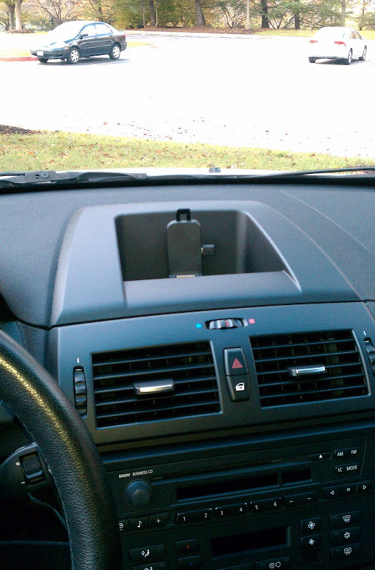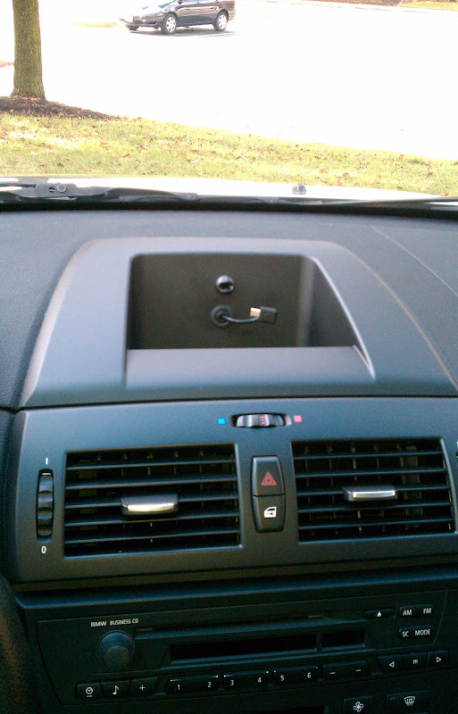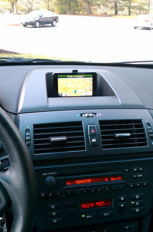 Well, here's some pics of what the setup looks like... ![]() When you use the 12V switched power wire, the Nuvi will turn on and off by itself. It's internal battery will charge while the car is switched on. And of course, you won't run the risk of forgetting to turn off the Nuvi and drain your car's battery. ![]() ![]() If you feel the urge, you can detach the Nuvi, and leave the cradle in place. ![]() Hehe.. or you could take the cradle too. BTW, all you need to buy from BMW is this dash piece. You can see where I dremeled it, to bring the power cord through. Then closed the whole using rubber grommets from the auto parts store.![]() The Nuvi, cradle and power cord/traffic receiver come as one package from Garmin. Note, the speaker built into the cradle. The Nuvi itself also has a small speaker built into it the is enabled when the unit is not in it's cradle. ![]() Turn on the ignition and up comes the Nuvi... ![]() Hope you like... ![]() I'll need to go back in there to add a proper USB / ipod connection. Thinking about using that BSW one, and mounting a USB and Cigarette lighter plate inside the arm console. That'll be this summer's project .BTW, Bavauto sells a set of upholstery removal tools so that you don't end up scratching stuff. I highly recommend them.