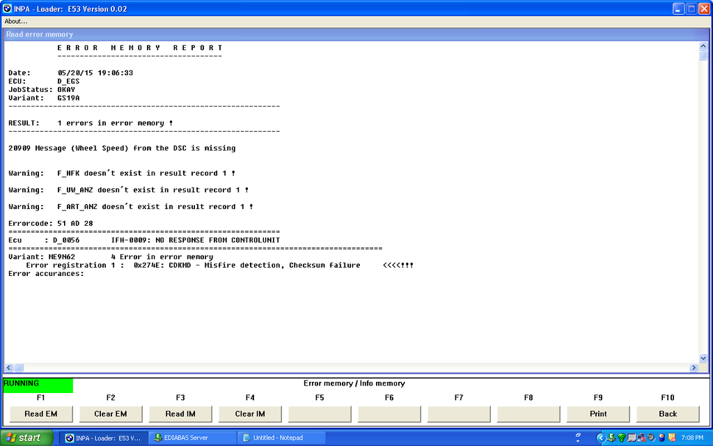 https://docs.google.com/spreadsheets...gid=1979265047 While driving today, my car all of a sudden started stuttering, hesitating, won't go over 30 mph without feeling like the idle is going to die. I basically had to limp it 4 miles home around 20 mph. Once I go passed 25 - 30 mph, the car starts stuttering hard and feels like it's not getting any gas or spark...not really sure. It kind of reminded me when I had misfire on my e36, so when I got home I changed out my spark plugs to the OE NGKs. Problem was still there. I though I read it might be the torque converter, but when I drive the car using "steptronic?" and shift gears manually, it still has the exact same symptoms. I tried using INPA to get the error, but this was the best I could do. Does this mean anything?