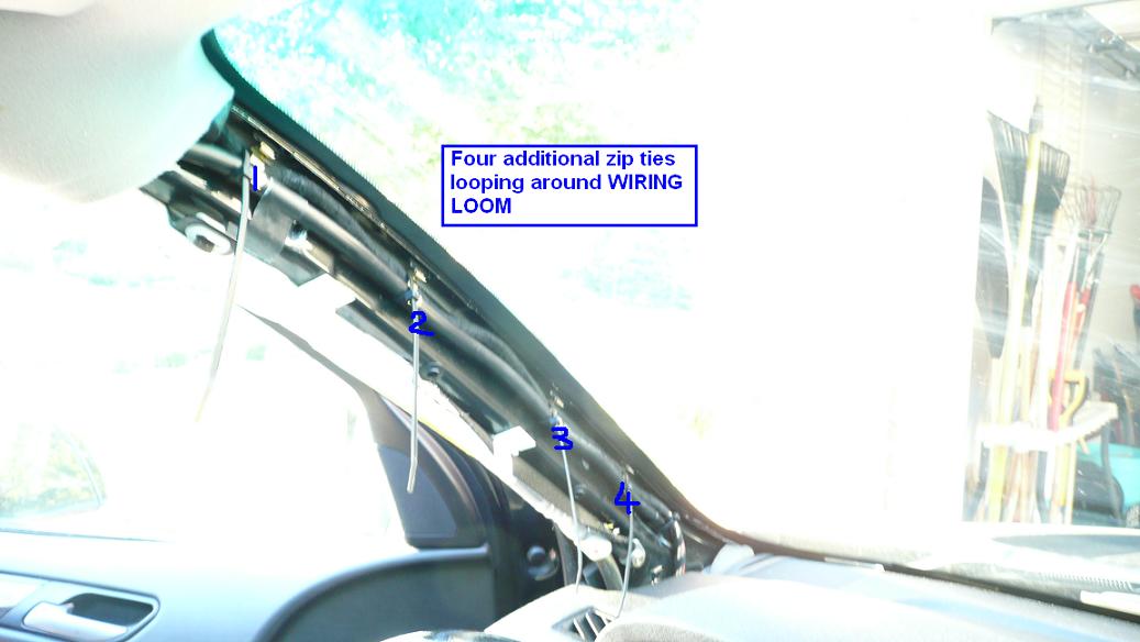 3. Now you can see my kinked tube. From factory there was only 1 zip tie. So I added another 4 as shown, making sure the zip tie goes around the wiring loom.