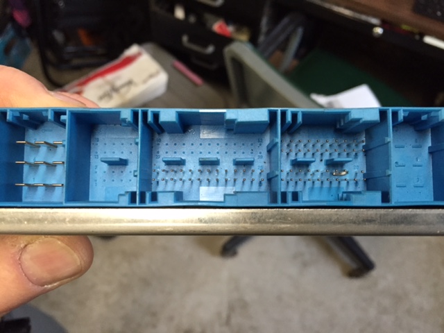Ok, I was ruminating at work today about swapping out TCMs, and going against the advice of a trusted friend who happens to own his own INDY shop, when I got home I grabbed the TCM that was matched up with my original, non-operational transmission. After looking at a number of posts on here and other BMW forums with respect to having to reprogram them, I felt pretty confident that if my TCM part numbers and other identifiers matched up, it should work. In the picture with the two TCMs, the left one is from the bad tranny and the lower one is matched to the one I just installed. Numbers looked good. So I pulled my cowl apart, and got into the e-box. Pulled out the TCM, and before I put in the replacement, looked down into the cavities to inspect the pins. If you recall in my prior posts, I had already replaced the harness from the TCM out to the o2 sensors and down to the transmission. What I did not do at that time was inspect the pins on the TCM; I just left it in place as I swapped harnesses. As you can see from my two additional pictures, I have a pin going "sideways" instead of "up." Instead of messing with trying to straighten the pin at that time, I went ahead and put my old TCM in anyway. Fired it up, took it for a ten mile run. So far, no MIL, no Rollover mitigation/4x4, light, no "trans failsafe program" warning. It did reach operating temperature, which is usually where I'd get a all the warnings to activate. I will take it on a longer run tonight and report back. |