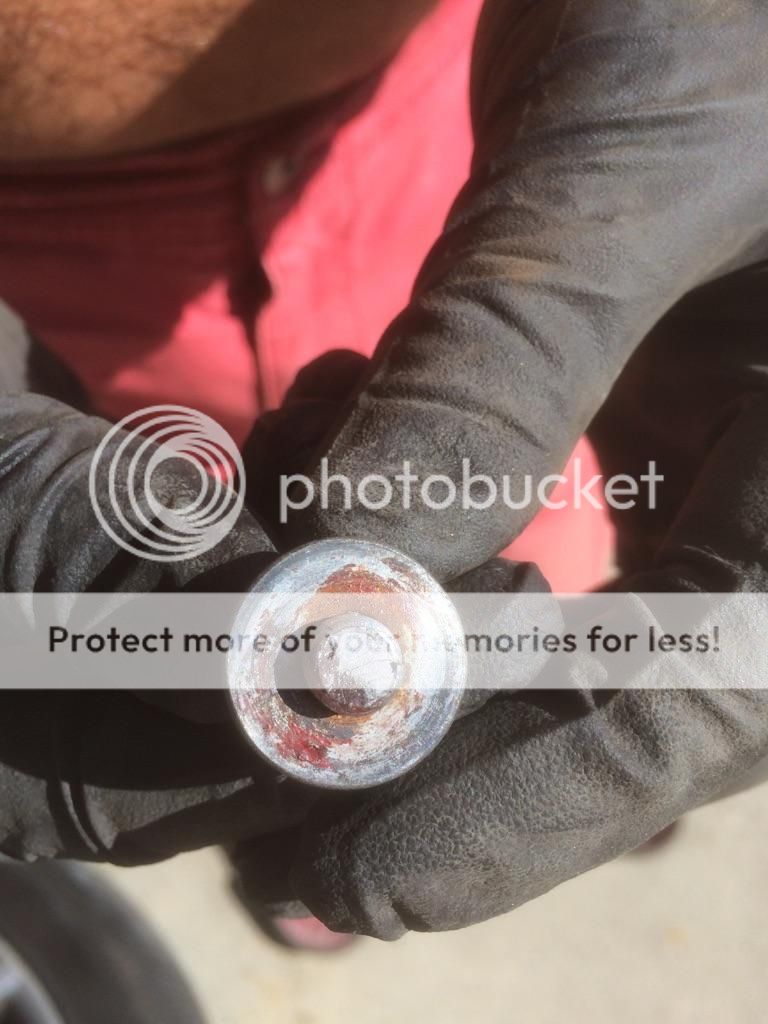 The driver side had the BMW original strut which was leaking. The passenger side was an Arnott and I am not sure it was leaking too but I went ahead with the replacement anyway. Now, on this passenger side, the strut went in easy. I torqued the three bolts on top (engine compartment area) and then moved back underneath to finish up and put the wheel back. While working on this I heard a piece of metal shot up. It hit the hood and then back in the engine compartment. I looked around to figure out what just had happened and I didn't notice anything at that point. I thought maybe something from the street flew over but it was a quiet afternoon and nobody around me. Anyway, after I finished with the wheel and I went back and look for the piece of metal or clues. It didn't take long since I only touched three bolts on that area. I checked that first. One nut and its own bolt were gone. I found it on the tranny heat exchanger valve. Here is where it snapped and why: ![]() ![]() ![]() The good thing is that I don't have to take the strut out. The bolt is removable from the strut assembly and I can use one from the old strut. The difficult part is that the bolt seems to be very hard metal and I cannot use normal drill bits to drill through. Any suggestion on what bit I should use? Cobalt? I have a bolt extractor but I need to drill a hole first.