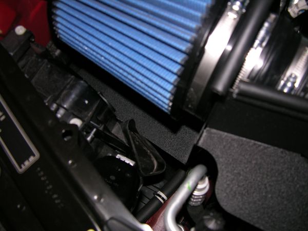 With the hood open and gently stepping on the gas, you can hear the "wooshing" sound as it sucks up air. While driving at full throttle after 4rpm it seems like there is a deeper engine note, but it could be just me because the 4.8 with the resonators removed is soo loud its almost possible to hear anything else. I want to do a little mod and that is, get something that can cut metal and cut a little section out of the heat shield at the bottom. ... Now before you guys think im crazy, the reason for this is because there is a tube that comes from the lower part of the front bumper that also delievers air into the intake area, but the heat shield covers that. I think that if that tube was open and could have room to breathe the intake might get more air. (check out the pic, the part that is circled is where the tube is sitting coverd by the heat shield)