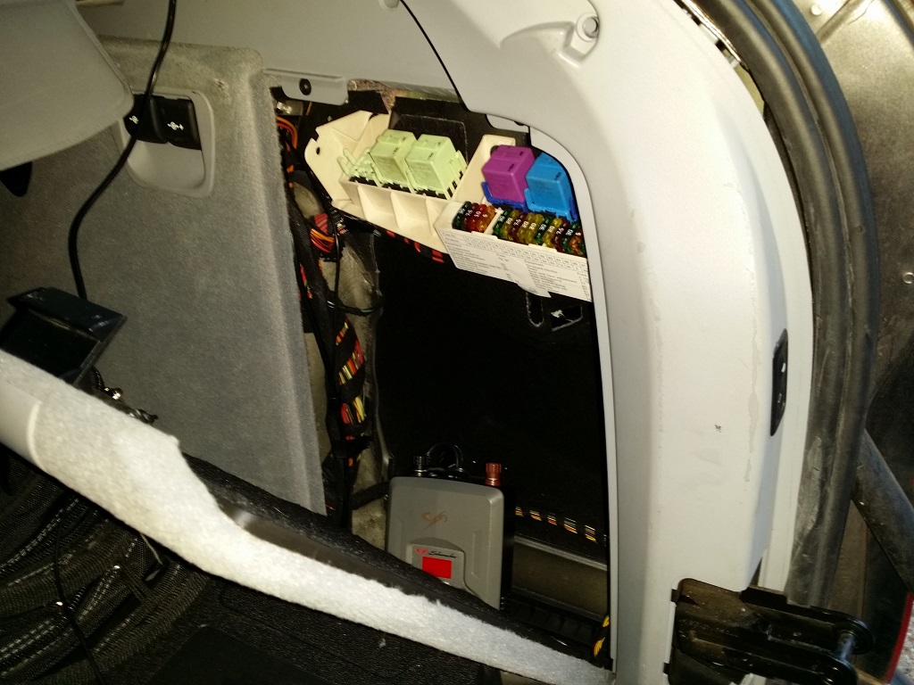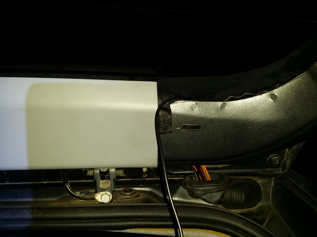 Now go back to the hatch area and remove the plastic trim from around the outside of the hatch (passenger side) so that you can tuck the cable inside of this cover.