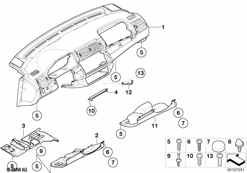 ![]() Part #1 is the main dash and two part numbers are given.. 01 Trim panel dashboard, radio SCHWARZ/GRAU 1 02/2002 51457001057 +core 01 Trim panel dash board, on-board monitor SCHWARZ/GRAU 1 02/2002 51457001095 +core The wood door over the CD player is a separate part, like in the E39 but it has no frame on it... (part #4). ![]() Hence folk using a dremel. ![]()