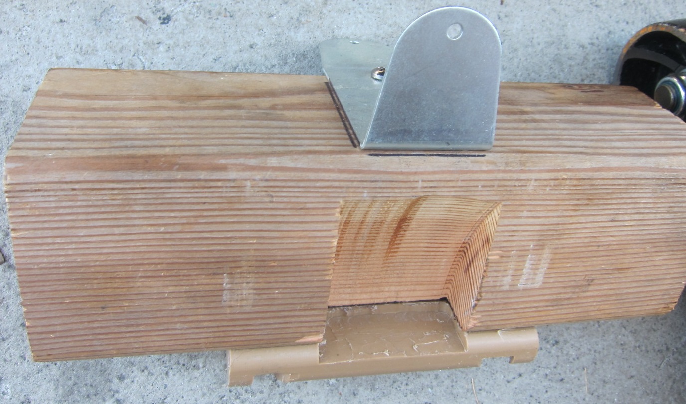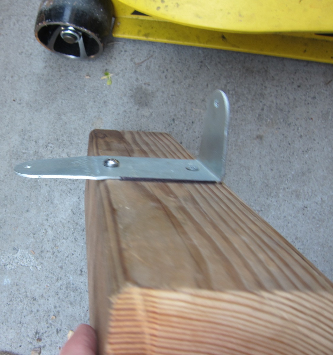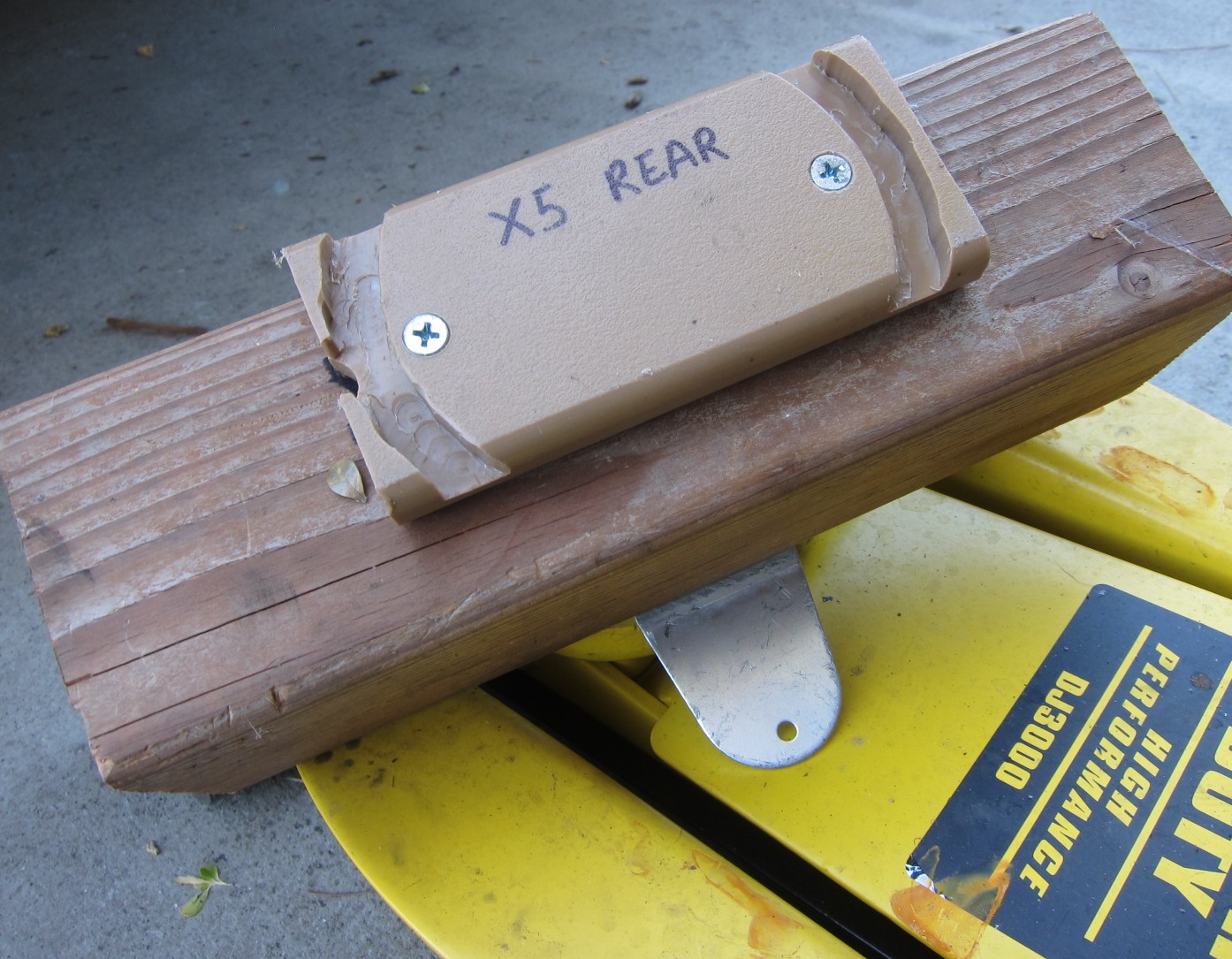 Also, customizing the fit to the floor jack is best done with the jack right there. When I first made them 3 years ago when I got this x5, I had a different jack, so I had to do a little extra routing / chiseling to make them fit snugly with the new one. If someone else wanted to make something like these, it would not make sense to make an exact copy. They'd want to make them based on their tools and materials at hand. For example, that bracket I use on the rear adapter has one flange sticking up, and the other one flattened. The flattened one serves no purpose at all, and would have been cut off if that was easy, but it was easier to just flatten it.