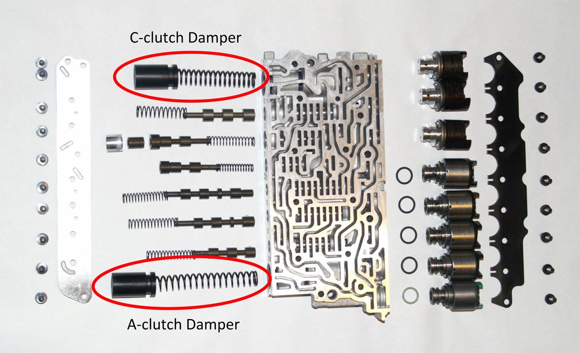 Assuming for a moment that you don’t have an electronic/electrical issue, but a mechanical/hydraulic one instead: Reverse requires two clutches to be engaged, C & F. In August 2001 ZF carried out modification number 8740B where they changed the material of the F brake piston due to wear issues and subsequent pressure leakage. ![]() The piston part number changed from 0501 208 317 to 0501 212 967. ![]() ![]() As yours is a 2001 model it may, or may not, have the upgraded piston fitted. If you can supply me with the serial number off the green ID plate rivetted to the left-hand side of the maincase, I can tell you. ![]() Another possibility is leakage in the C clutch circuit. To ensure smooth engagement of reverse from neutral when stationary, the C clutch has an accumulator or damper circuit which allows the clutch to fill quickly but then slows the application of pressure (and therefore torque capacity) using a system of one-way orifice valves, to prevent harsh engagement. ![]() The underside of the damper/accumulator is fed with modulated system pressure. At zero throttle the modulation pressure will be low and the accumulator piston can move freely, allowing the system to provide smooth engagement. If the transmission is in failsafe then the modulation pressure is at its maximum and it prevents the damper from moving, thereby bypassing the orifice valves and allowing the clutch to engage at full pressure. If there is hydraulic leakage in the C clutch circuit the clutch will not therefore engage when the accumulator circuit is active, but will engage in failsafe mode. This can also be demonstrated by temporarily removing the connector from the 16-pin plug on the back of the transmission. ![]() Anyway, this is all just speculation. You first need to eliminate the possibility of it being an electronic/electrical fault, which would be much cheaper to fix! Phil |
