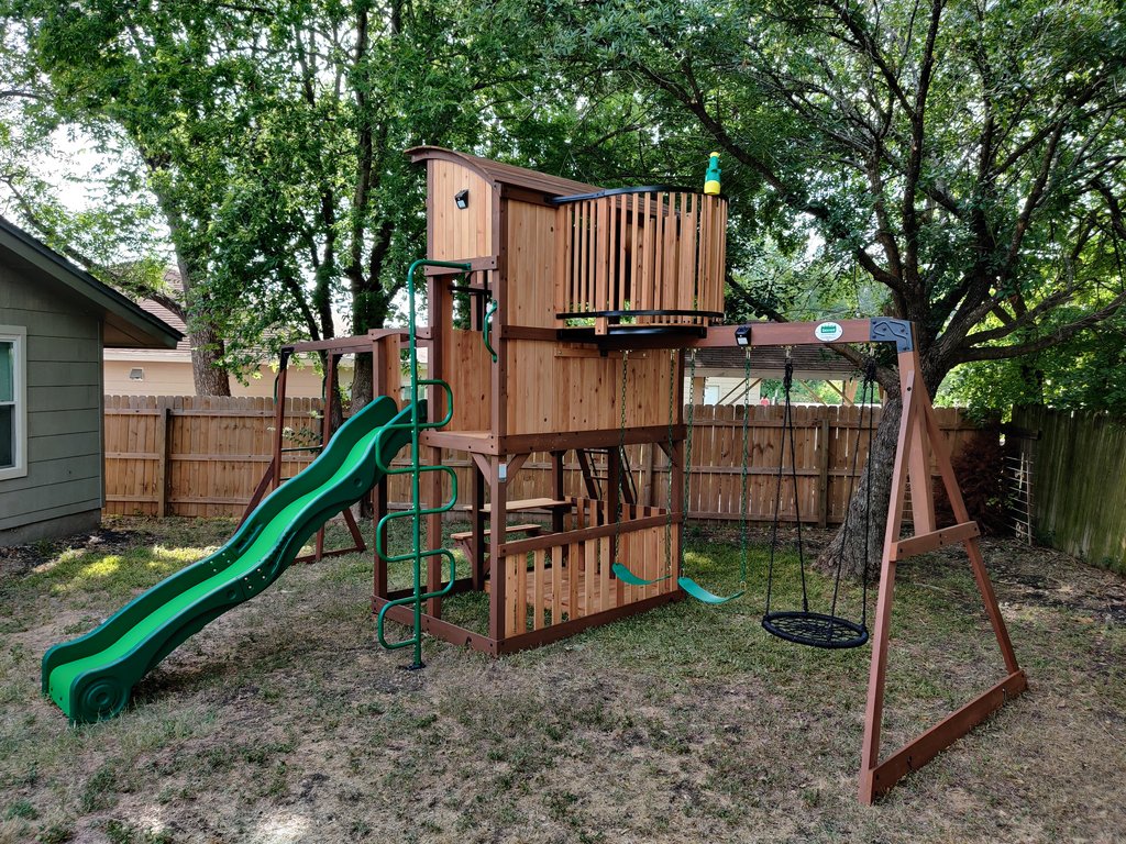 Love the play set! We had one similar back when my kids were younger, my son actually made me flatten off the top and put a platform up there for his telescope! Using the top most level we could see everything in the sky.
