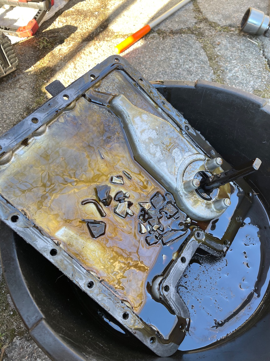 So, for 2 weeks I have been dabbling with fixes. I knew it did a slight rattle at start up, so expected guides at some point. With todays work-it will be sooner than later! There are some big chunks in here that concern me. And, is that little "U" shaped tube a piston squirter? This motor is in worse shape than I thought. Kids, always drop that lower oil pan and you will get a quick idea of what your internals look like.....Here we go! $$$$$$$$ Gotta love these V8's