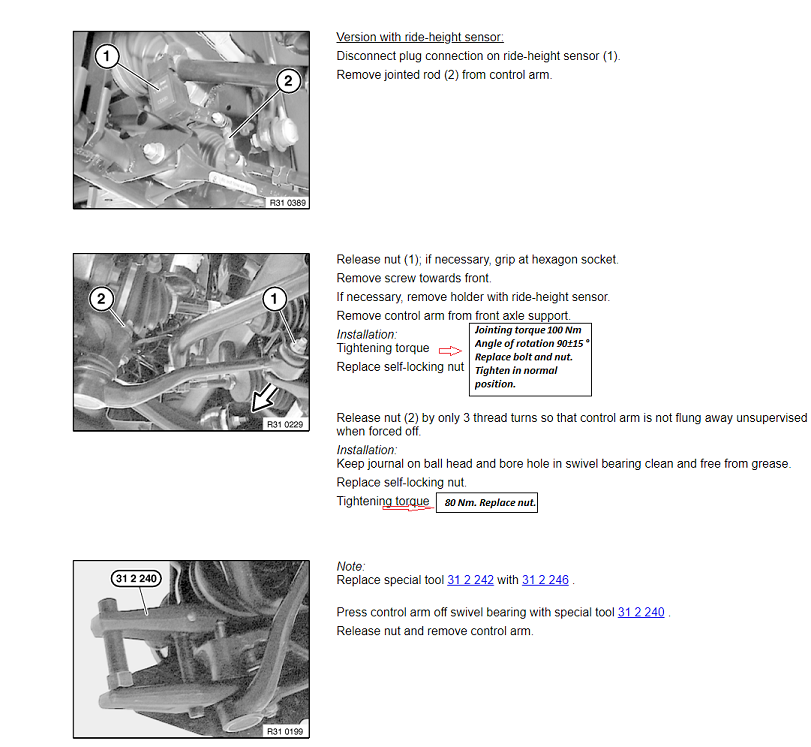 .... and here're the DIY instructions. Note the torque values. Must be tightened when the vehicle is on the ground or improvise that e.g. jacking up the steering knuckle to mimic vehicle on the ground (careful here, can be dangerous). It is necessary after reinstallation to carry out a wheel/chassis alignment check.