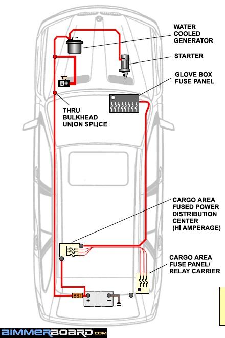 Battery testing is best performed on a fully charged battery using a battery load tester but you can get some idea of the charge state of your battery with a multi-meter - simply measure the no-load voltage (i.e with the negative terminal removed). ![]() In addition to the battery terminals on the battery, there are at least two other connections that might cause your problem. One is the "Battery Safety Terminal" (BST) on the positive battery lead. Another possible problem location is at the positive jumper connection under the hood (bonnet) - it can get loose and disconnect the battery. It's labelled "THRU BULKHEAD UNION SPLICE" in the image below: - ![]() (NOTE: The image shows the B+ terminal as a separate line but in many E53 X5s, it is at the union splice location) Hope that helps...