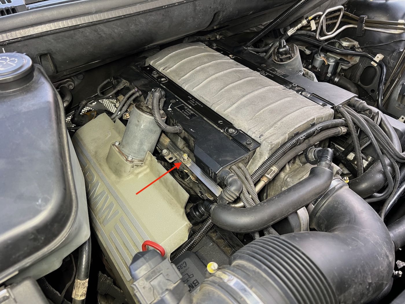 N62TU fuel pressure schraeder valve location and size