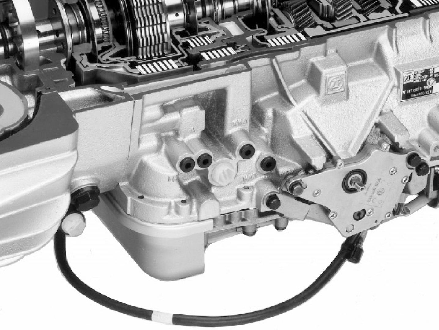 ![]() ![]() Very early transmissions had pressure tapping points for just about everything. If we look at this early cut-away transmission from the official repair manual you can see pressure tapping points for PH, A, WKa & WKz (as well as the main flow to the cooler ZK) ![]() Indeed, the overhaul kit still contains plugs for all these tapping points. Over the production lifetime, the casting was modified. First the tappings were no longer machined, PH, A, ZK, WKa & WKz ![]() F, D & C and then eventually the majority of them disappeared altogether. The solenoids operate off a regulated 5 bar supply. I would guess that the main pressure typically runs around 10 bar (A clutch pressure will be the same), maybe increasing to 15 bar for Reverse? Phil |