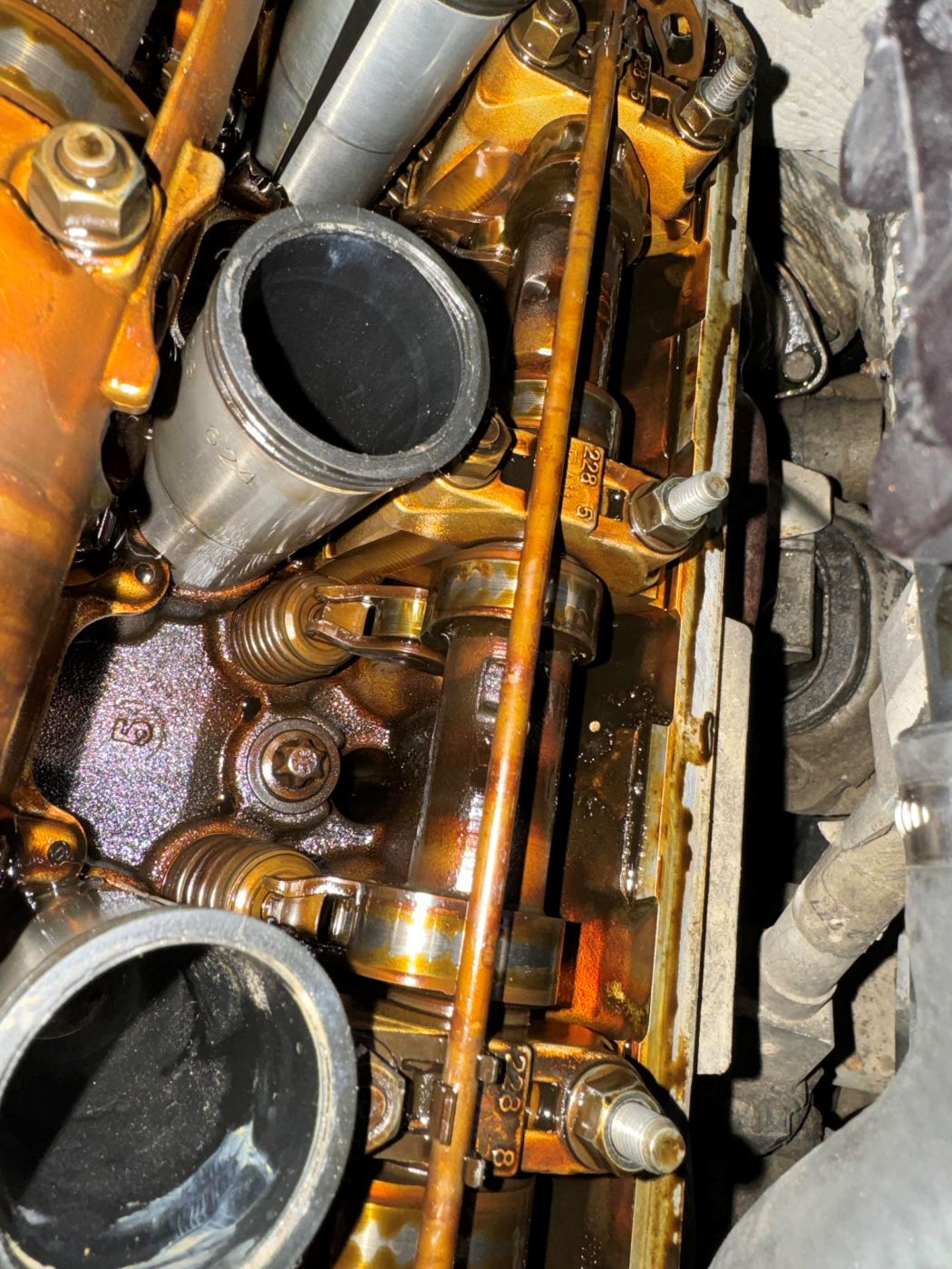 Hey Folks, quick update. I took the valve cover off and I cannot see anything wrong with the intake/exhaust valves or the cam shafts or the valvetronic shaft.. I have attached a ton of photos of the Cyl7 valves rockers.
